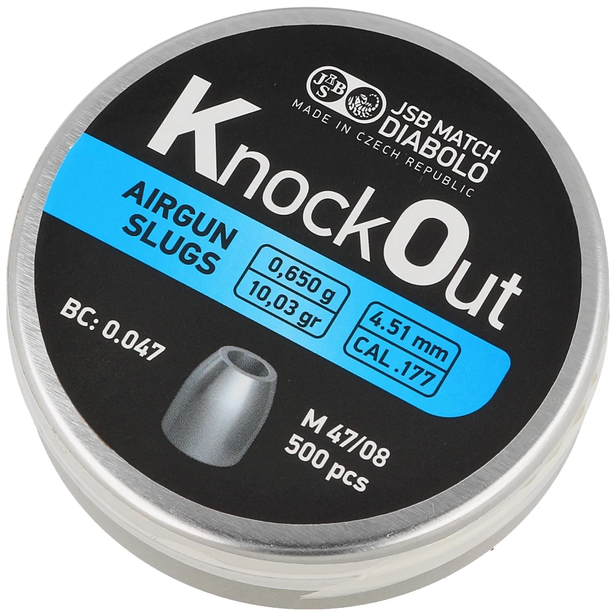 - KnockOut Slug 0.650 g jeden z najlepszych śrutów klasy Hunter w kal. 4.51mm, zaprojektowany do najmocniejszych karabinów, skuteczny na dystansach do 200m. Konstrukcja Hollow point z dużym meplatem zapewnia maksymalną ekspansję i skuteczny transfer energii