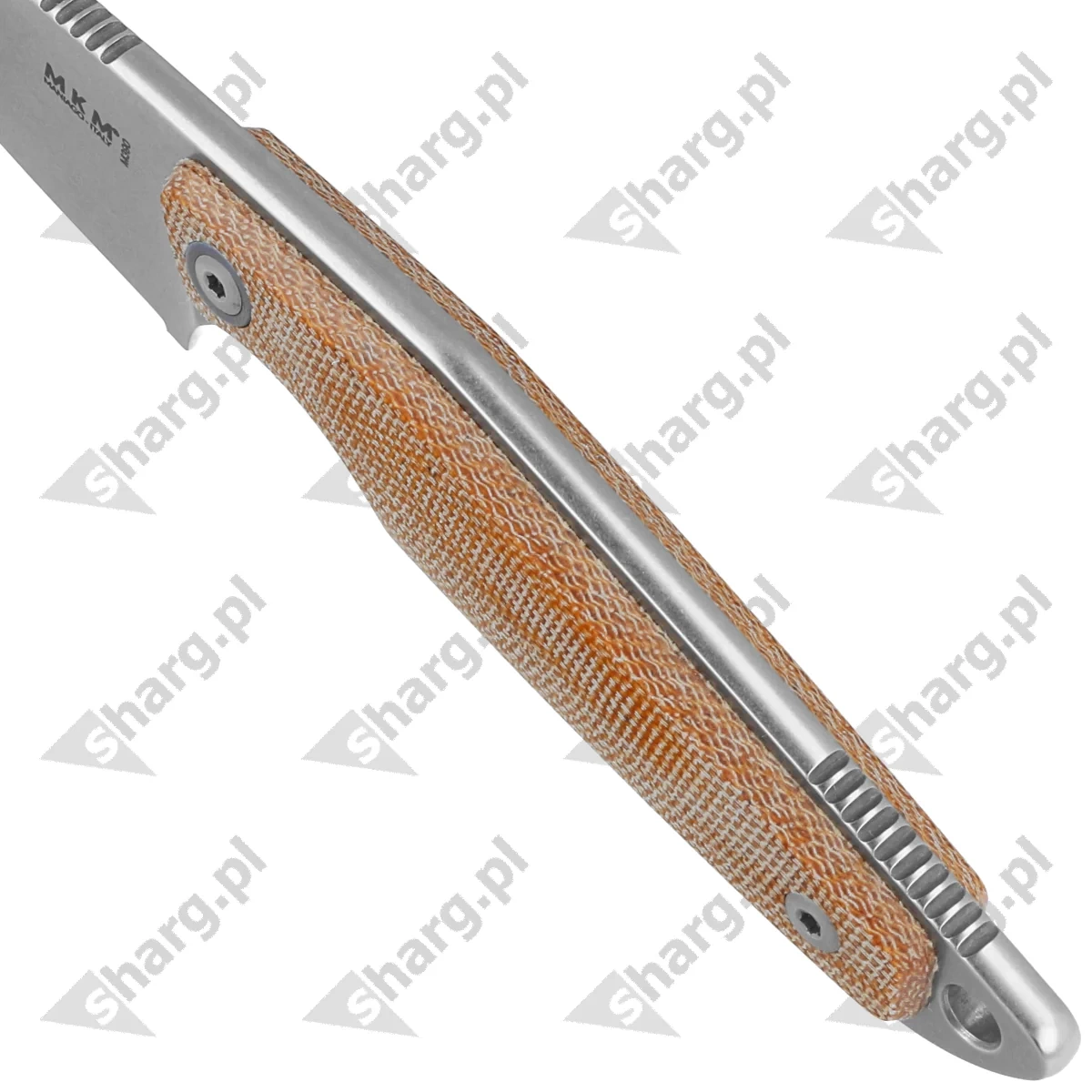 • Makro 1 Natural Canvas Micarta, Stone Washed, design by Voxnæs. Kuty z jednego kawałka stali M390, lekki nóż wielofunkcyjny włoskiej marki MKM. Wygodna rękojeść i ostra jak brzytwa, krótka mocna klinga z zaokrągloną krawędzią tnącą.