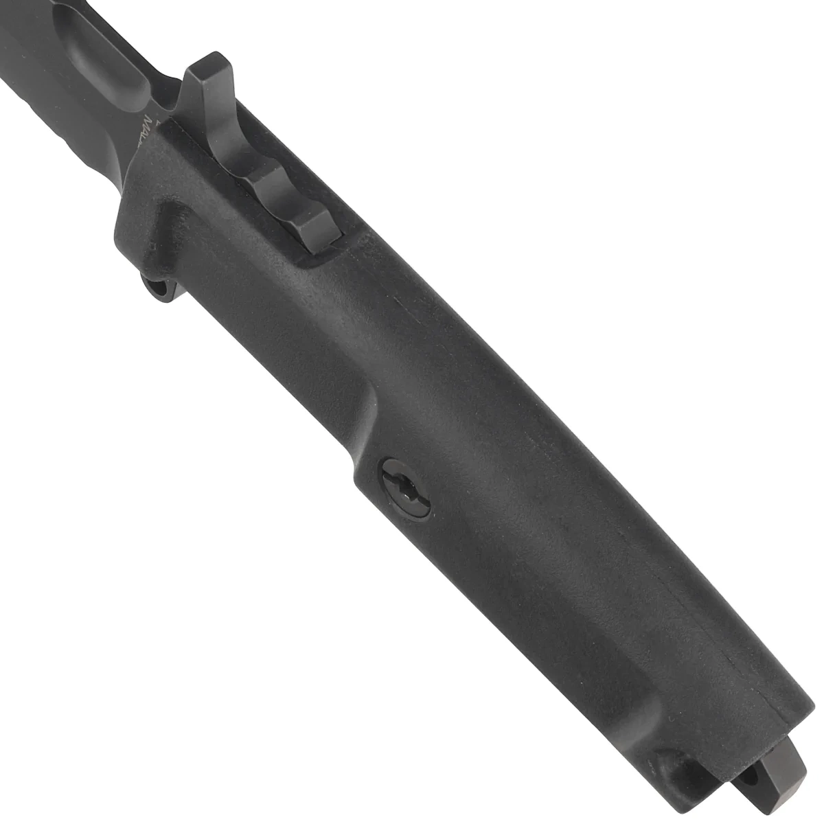 Pochwa - z formowanego wtryskowo nylonu w kolorze czarnym, umożliwia bezpieczne przenoszenie jak i szybkie dobycie noża. Trzy możliwości ustawienia kąta przenoszenia etui (poziomo, pionowo i ukośnie pod kątem 45°). Kaburę wyposażono w pojedyncze, automatyczne, aktywowane naciskiem zabezpieczenie, dla szybkiego chwytania i dobycia noża. Mocowanie kabury umożliwia jej szybkie przypięcie /wypięcie. Pasuje do pasów o szerokości 32-46 mm, a po wyjęciu regulacji również do większości pasów policyjnych. W celu uniknięcia przesuwania się pochwy na pasie, uchwyt wyposażono w dwie śruby regulacyjne.