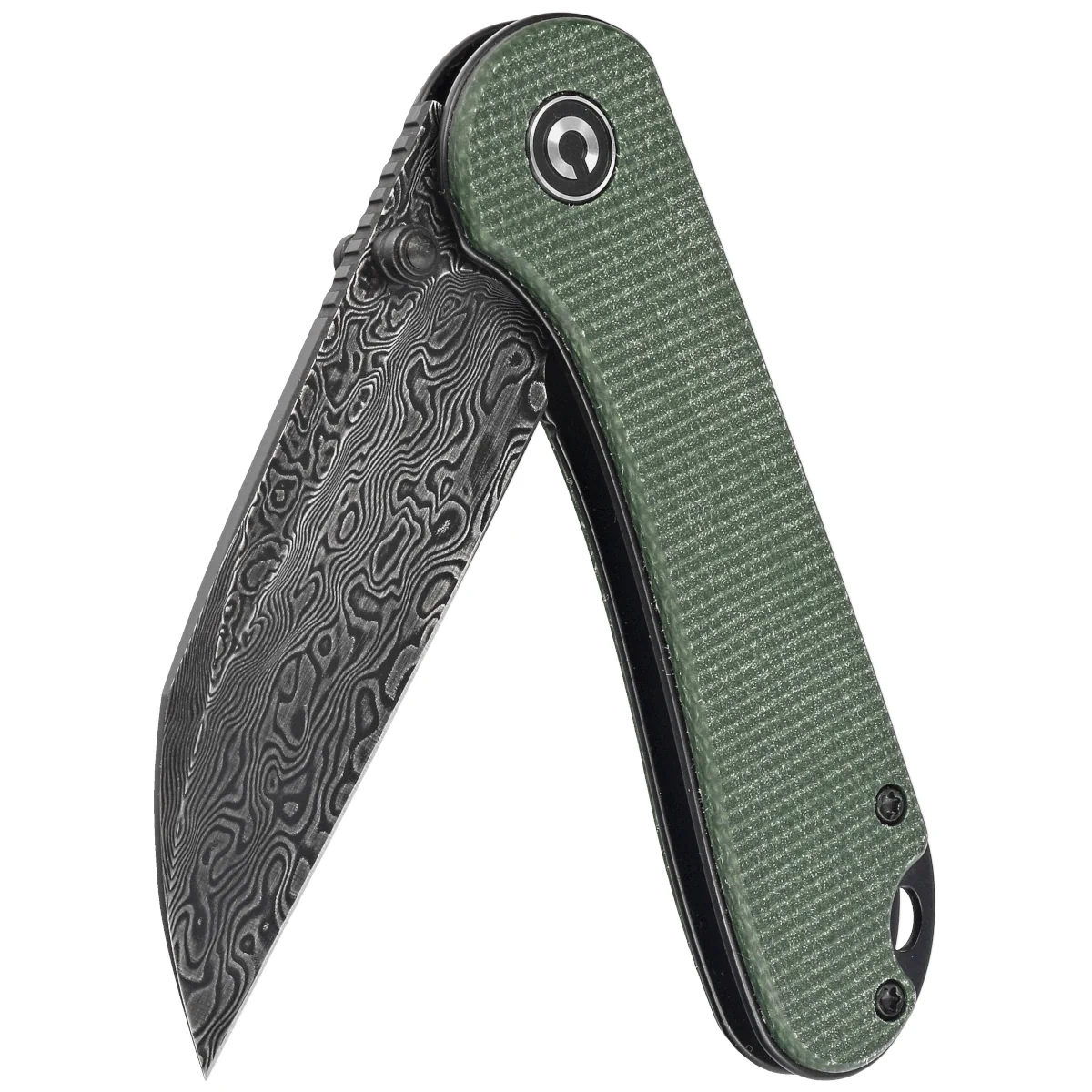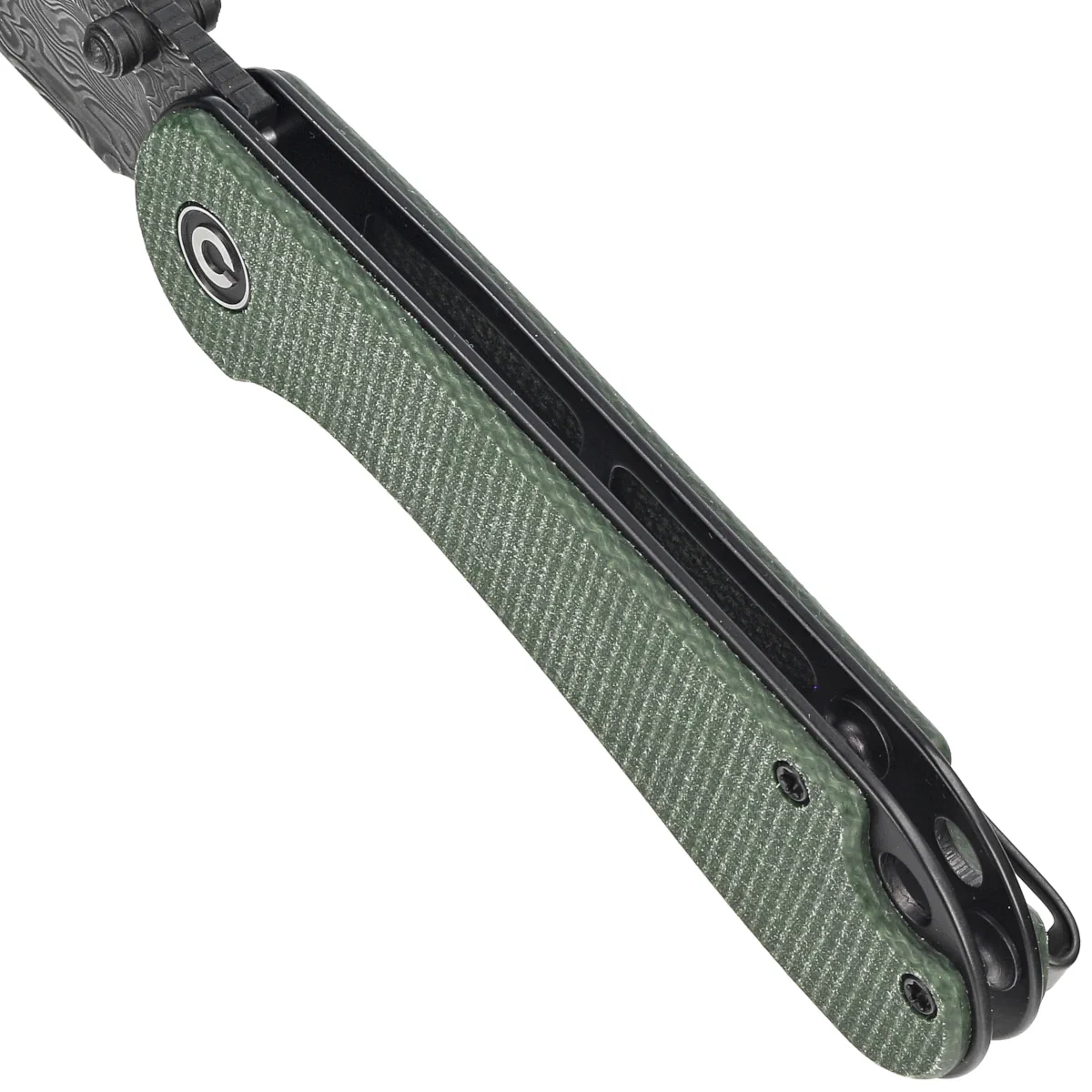 Nóż składany Civivi Elementum Wharncliffe Green Canvas Micarta, Black Hand Rubbed Damascus (C18062AF-DS1)