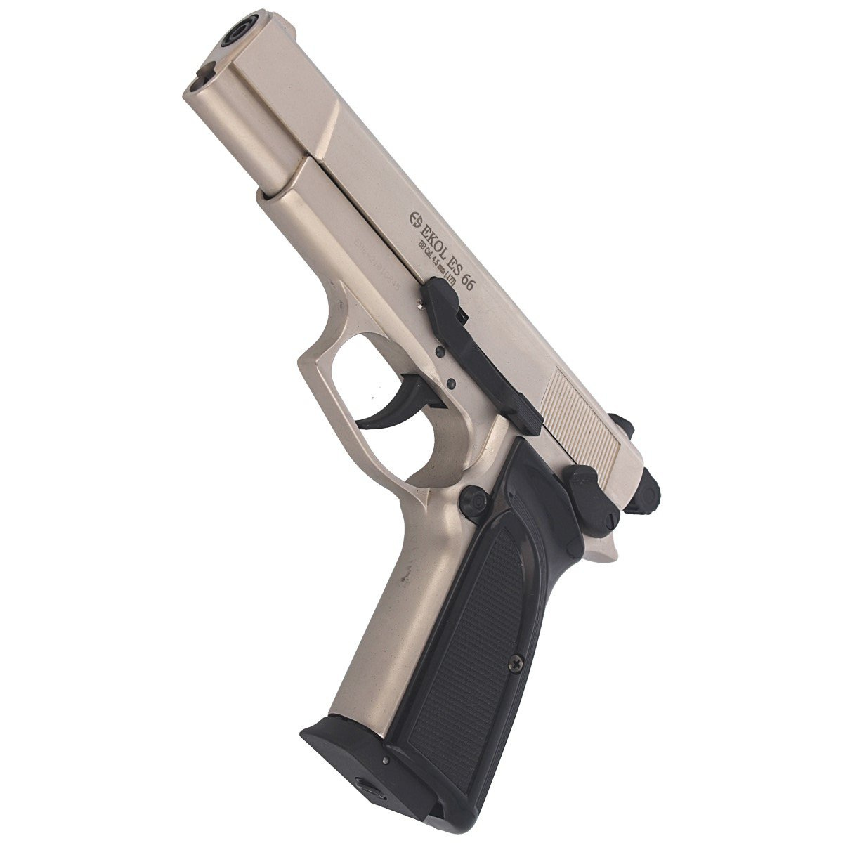 Ekol ES 66 Satin pistolet pneumatyczny o konstrukcji opartej na broni sygnałowej firmy Voltran. Oferuje realistyczny wygląd oraz solidną konstrukcję, zapewniającą trwałość i niezawodność. Zamek (slide), korpus (frame), kurek (hammer), dźwignia decockera (decocker lever) oraz drobne elementy pistoletu zostały wykonane z metalu. Dzięki tak silnym korzeniom, ta jedna z najmocniejszych pistoletowych wiatrówek o prędkości 150 m/s nadaje się do dynamicznego strzelectwa sportowego lub treningu taktycznego.