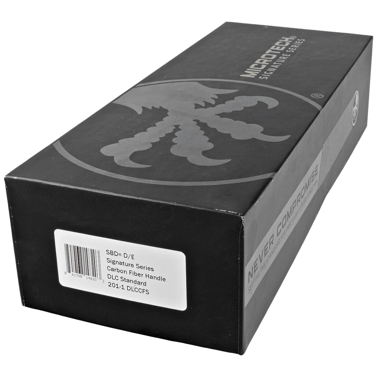 - SBD Double Edge Milled Carbon Fiber, Black DLC śmiały projekt wszechstronnego sztyletu, efekt współpracy Sebastijana Berenji i firmy Microtech. Szeroka głownia i prosta, wygodna w każdym chwycie rękojeść gwarantują, że ten nóż nie zawiedzie!