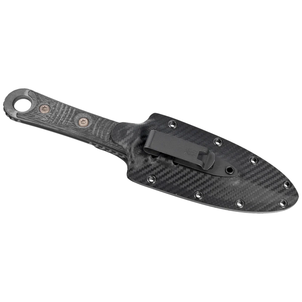 Pochwa - wykonana z kydexu laminowanego włóknem węglowym, zapewnia pewne trzymanie noża w dowolnej pozycji. Mocowanie typu TEK-LOK na pas lub do oporządzenia umożliwia przenoszenie noża w pozycji pionowej lub poziomej.