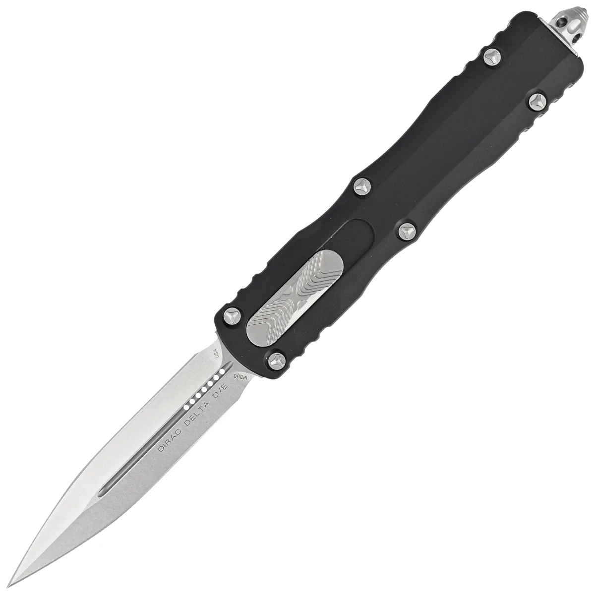 - Dirac Delta D/E Black Aluminium, Stonewashed większa wersja noża automatycznego OTF z serii Dirac. Pracujący w trybie D/A, wyposażony w szybki mechanizm wysuwający ostrze. Przycisk slidera na boku rękojeści. Projekt Tony Marfione, Microtech Knives