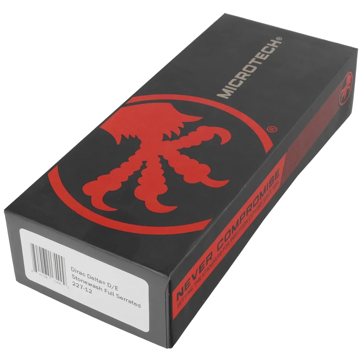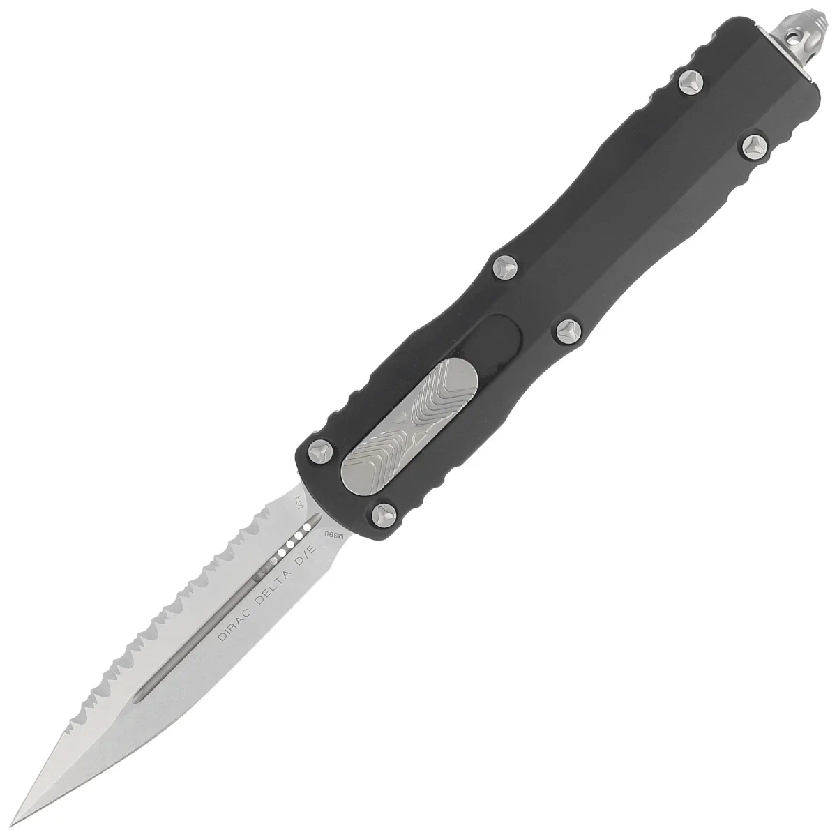 - Dirac Delta D/E Black Aluminium, Stonewashed F/S większa wersja noża automatycznego OTF z serii Dirac. Pracujący w trybie D/A, wyposażony w szybki mechanizm wysuwający ostrze. Przycisk slidera na boku rękojeści. Projekt Tony Marfione, Microtech Knives