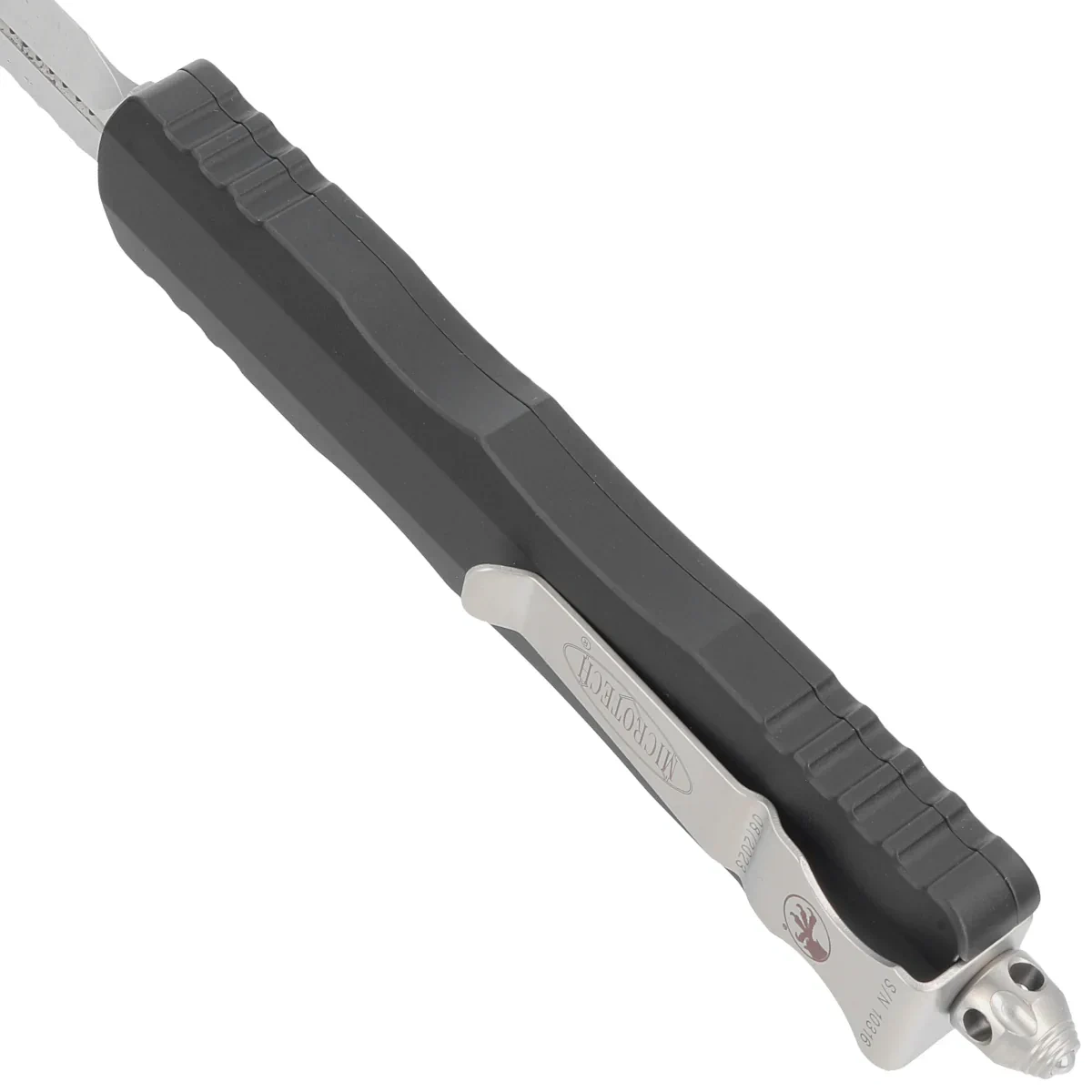 Rękojeść - wykonana z doskonałą precyzją w technologii 3D na frezarkach CNC, z anodyzowanego na czarno aluminium 6061-T6. Faktura powierzchni rękojeści powoduje, że nóż nie ślizga się w dłoni podczas używania. Na grzbiecie i dole rękojeści znajdują się nacięcia (jimping) dla pewniejszego chwytu. Charakterystyczne jest umiejscowienie suwaka slidera, w zagłębieniu wyfrezowanym na boku rękojeści. Dzieki temu ręka układa się naturalniej przy otwieraniu i zamykaniu noża. Smukły profil oraz frezowany dwupozycyjny (prawa/lewa) masywny klips typu deep carry, umożliwiają dyskretne przenoszenie noża w kieszeni, w pozycji tip-down (czubkiem ostrza do dołu). Na klipsie znajduje się logo Microtech, numer seryjny i data produkcji. Rękojeść zakończono zbijakiem do bicia szyb, masywny stalowy trójkąt, w który wprasowano kulkę z węglika wolframu.