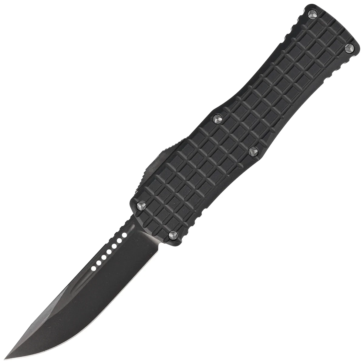 Głownia - szlifowana maszynowo typu S/E (Single Edge Drop Point), pokryta czarną powłoką DLC. Ostrze wyprowadzono wysokim szlifem płaskim (Flat Grind), zapewniającym doskonałe właściwości tnące. Zbrocze z serią otworów wzmacnia klingę. Dzięki temu przy zachowaniu dużej wytrzymałości nóż ma znakomite właściwości przy przebijaniu. Mocny mechanizm wysuwania / chowania klingi za pomocą moletowanego Thumb Slide, schodkowego suwaka pod kciuk wymaga dla bezpieczeństwa przyłożenia konkretnej siły do pokonania oporu sprężyny. Sposób otwierania zapewnia bezproblemowe otwarcie osobom prawo, jak i leworęcznym.