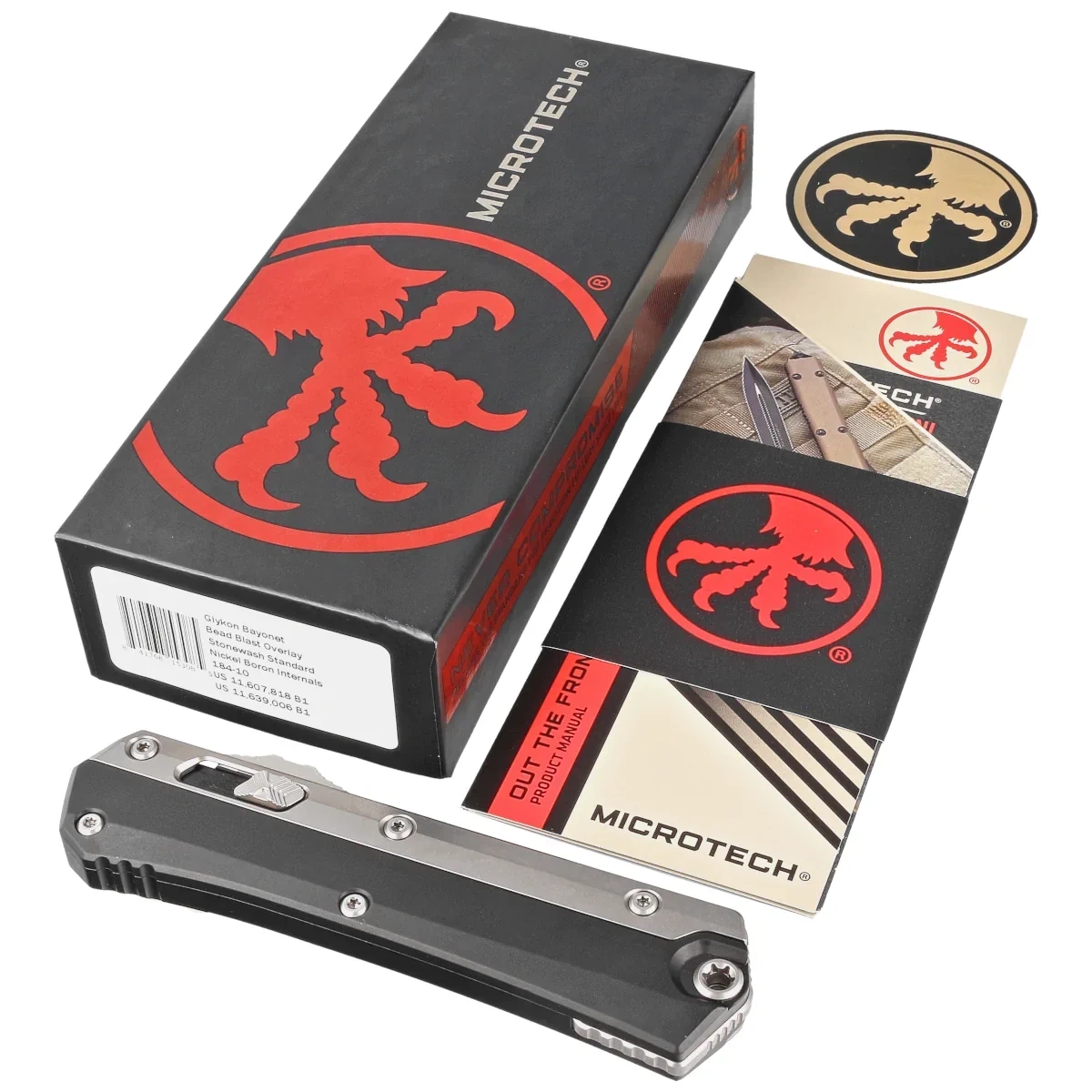 Nóż automatyczny OTF Microtech Glykon D/E Bayonet Black Aluminium / Bead Blast Titanium, Stonewashed M390 by Tony and Sean Marfione (184-10)