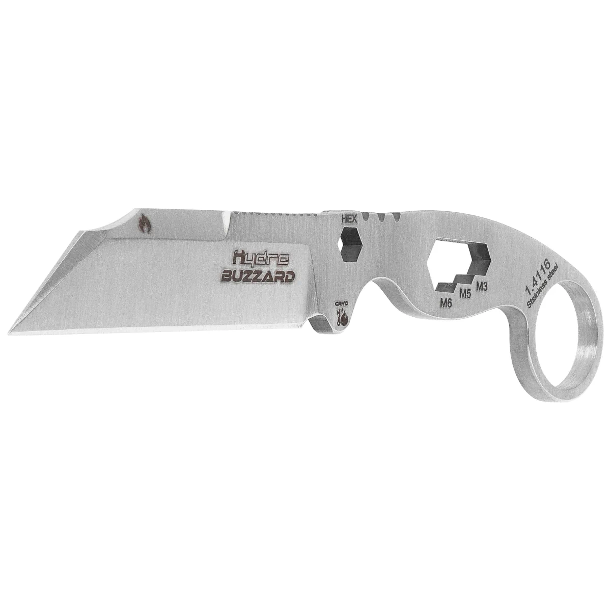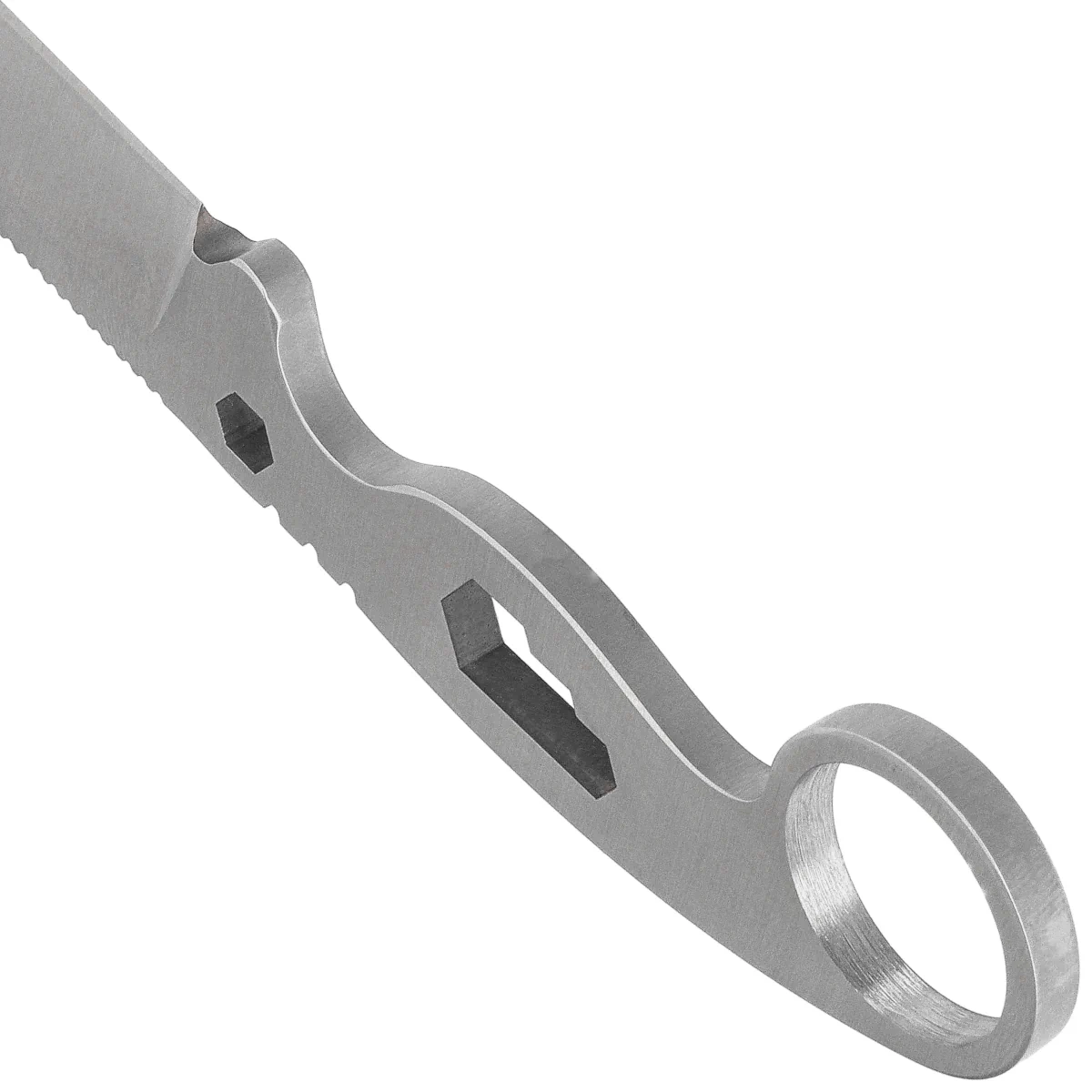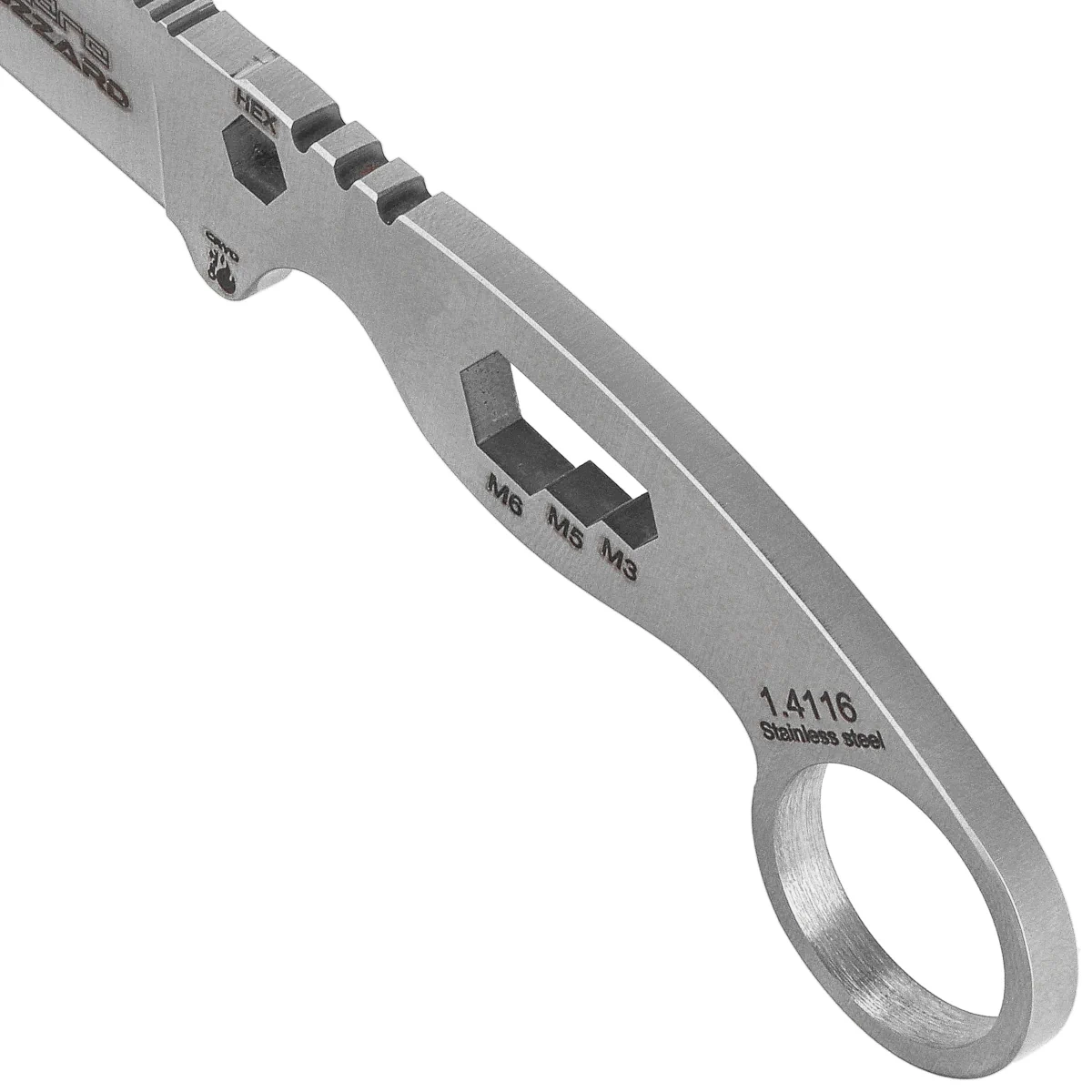 Dodatkowe funkcje – nóż wyposażony jest w stały klucz francuski w rękojeści z trzema pozycjami (M3, M5 i M6). Grzbiet ostrza posiada strefę przygotowaną specjalnie do użycia z krzesiwem lub ferrocerem. Ponadto, nóż może być używany jako śrubokręt po włożeniu bitu sześciokątnego, a zakończenie rękojeści pełni funkcję zbijaka do szyb.