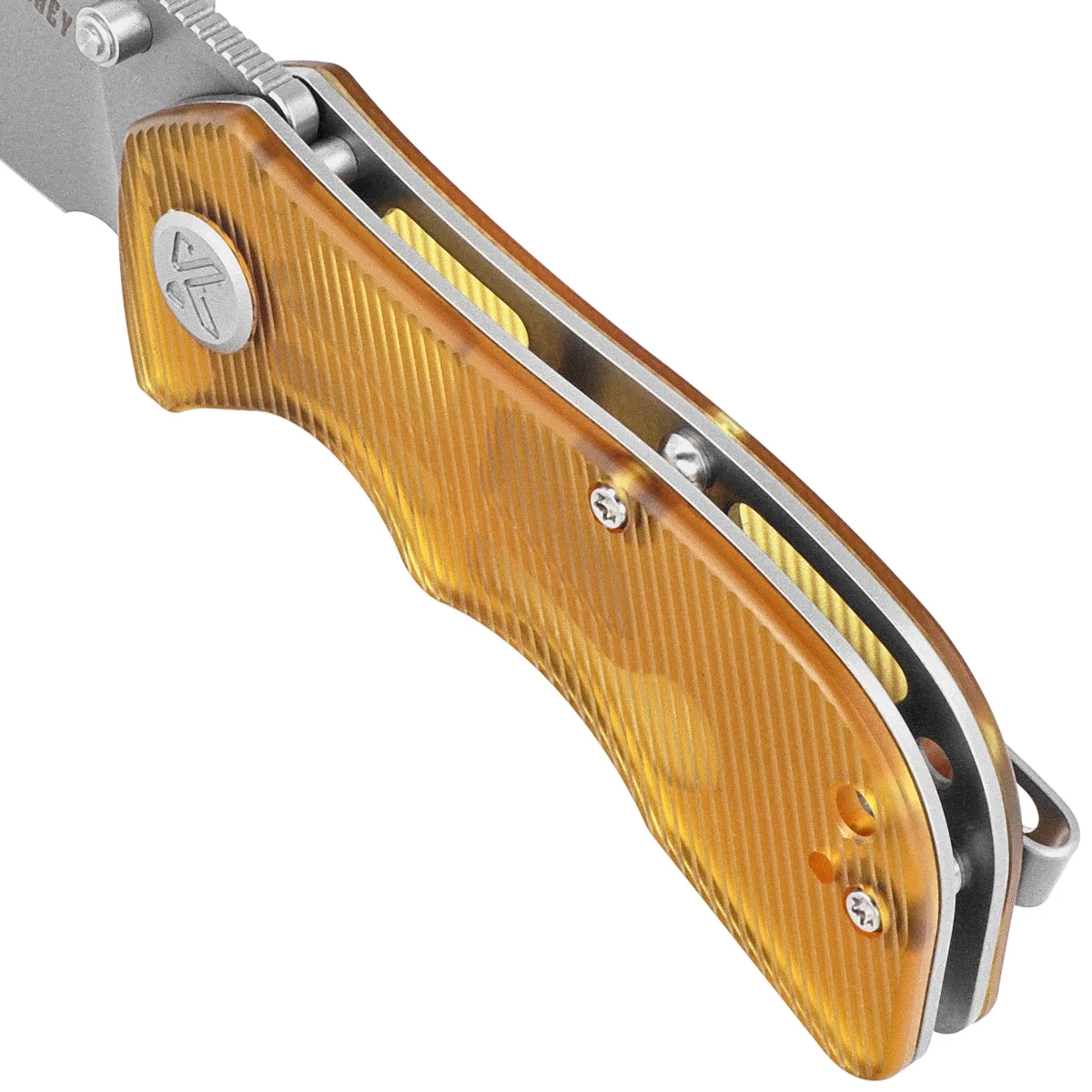 • Karaji Clear Ultem, Bead Blasted podręczny nóż składany EDC. Wszechstronna, użytkowa głownia spear point ze stali nierdzewnej 14C28N, obustronny kołek do otwierania oraz rękojeść z tworzywa ULTEM. Znakomity stosunek jakości do ceny! Bestseller!