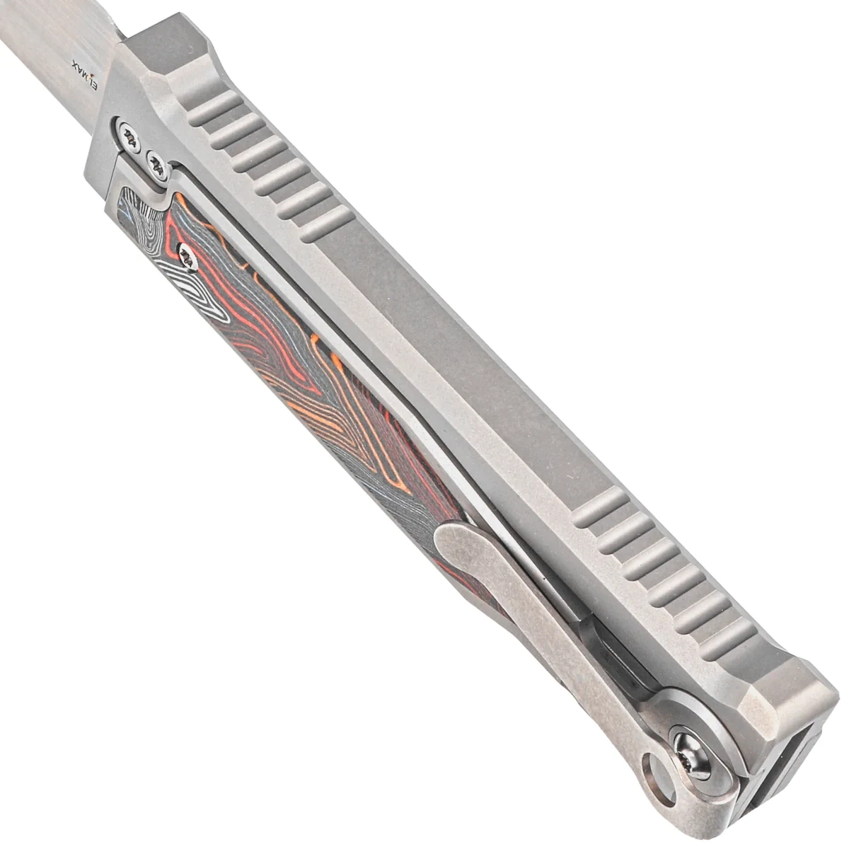Nóż grawitacyjny Reate EXO-M Gravity T/E Bead Blasted Titanium/Damascus MultiColor G10, Satin Elmax
