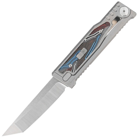 • EXO-M Gravity Tanto Bead Blasted Titanium / Damascus Multi Color G10, Satin. Model wyposażony w klingę wysuwaną z przodu, aktywowaną siłą grawitacji. Najwyższej klasy materiały, intuicyjny mechanizm otwierania, popis inżynierów w dziedzinie projektowania