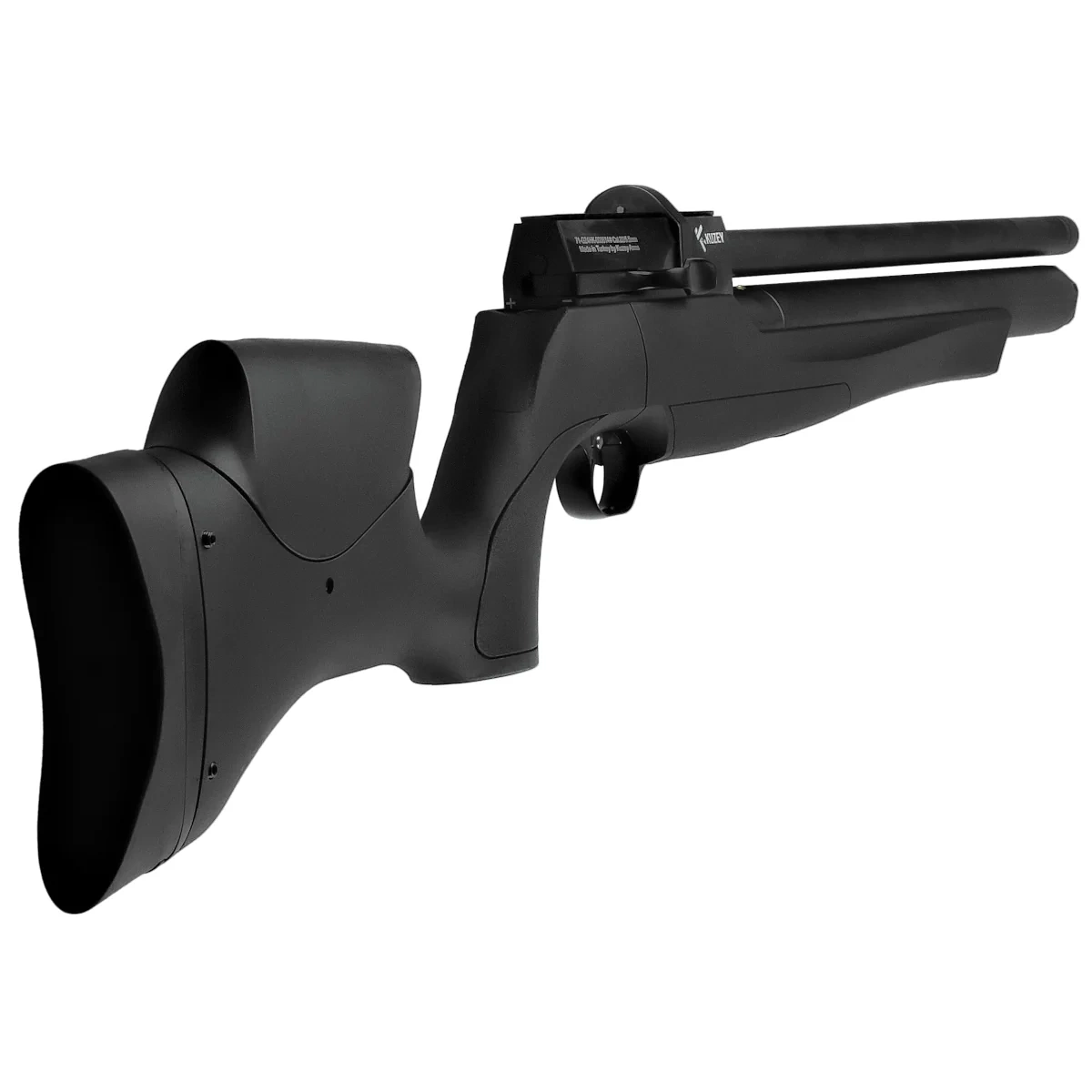 Kuzey to turecki producent znakomitej jakości wiatrówek PCP. Wszystkie karabiny tej marki w standardzie wyposażone są w lufę ze zintegrowanym tłumikiem, regulator siły strzału i regulowany mechanizm spustowy. Kuzey K600S to wiatrówka w klasycznej polimerowej osadzie, wyposażonej w regulowaną baką policzkową i boczną dźwignią przeładowania typu side lever. Dostępny jest w kalibrach 4.5 mm, 5.5 mm oraz 6.35 mm.