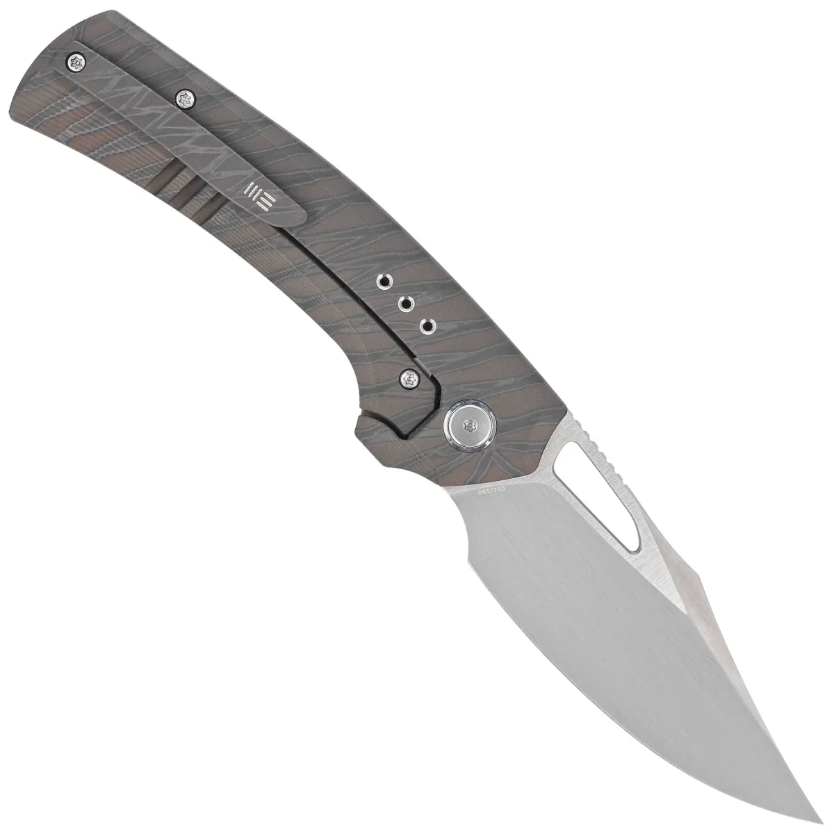 Nóż składany WE Knife Nefaris LE No 051/160 Tiger Stripe Titanium, Hand Rubbed Satin CPM 20CV (WE22040D-4)