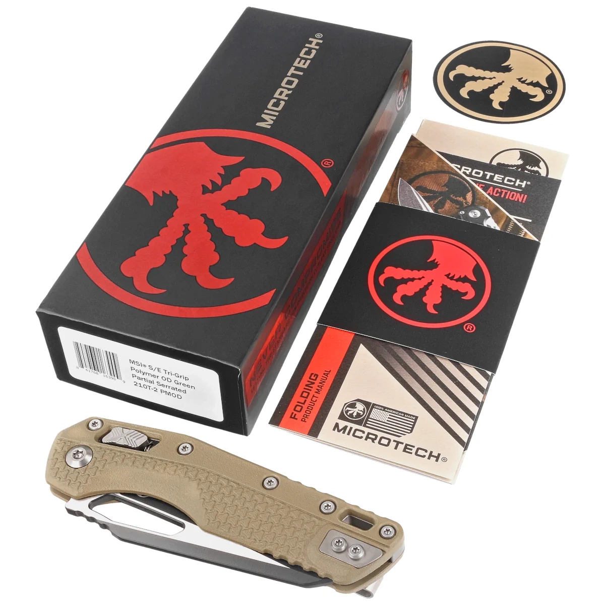 Nóż składany Microtech MSI S/E Ram-Lok OD Green Tri-Grip Polymer, Black/Satin P/S M390MK by Tony Marfione (210T-2PMOD)