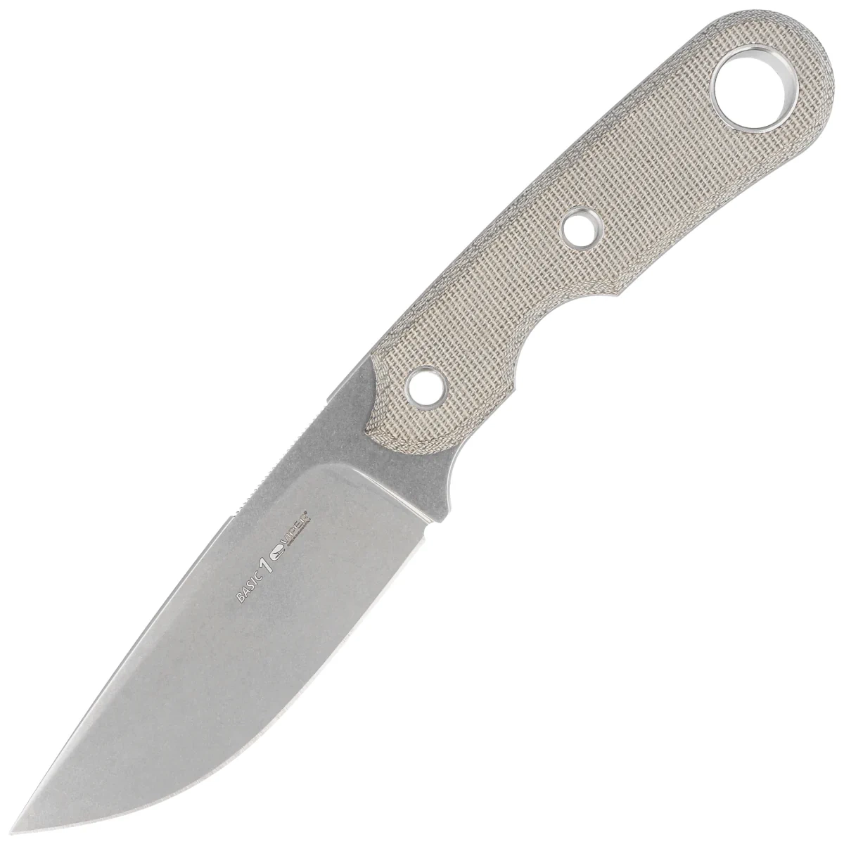 • Basic1 Green Canvas Micarta, Stonewashed, projektu Tommaso Rumici. Solidny kawałek stali D2, wielofunkcyjny nóż włoskiej marki Viper. Charakteryzuje się wygodnym uchwytem i ostrym jak brzytwa, mocnym ostrzem z zaokrągloną krawędzią tnącą.