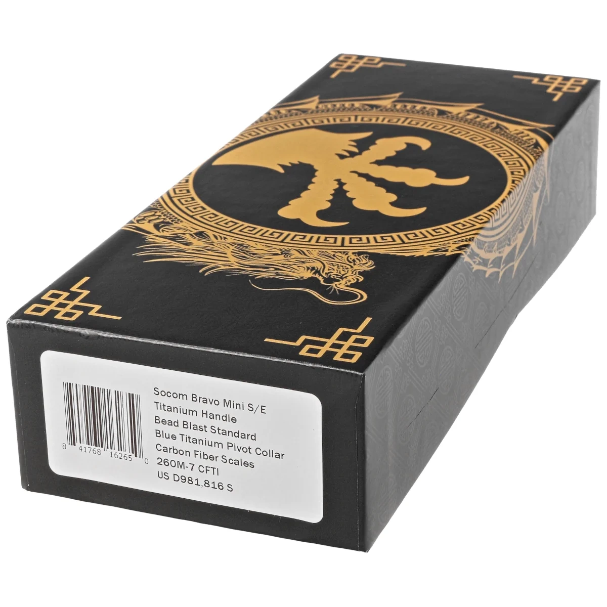 - Socom Bravo Mini S/E Titanium/Carbon Fiber, Bead Blasted kompaktowy nóż składany, zaprojektowany tak, aby spełniać najostrzejsze wymagania operatorów jednostek specjalnych armii USA. Najlepsze materiały, niesamowita wytrzymałość, perfekcyjne wykonanie!