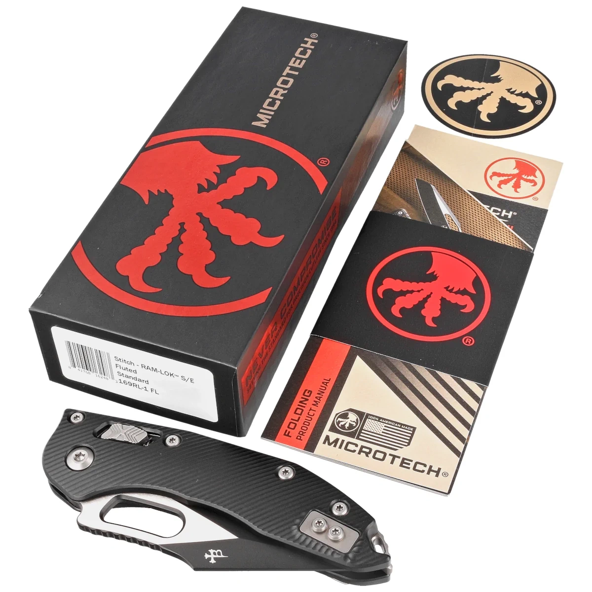 Nóż składany Microtech Stitch Ram-Lok S/E Fluted Black Aluminium, Black M390MK by Borka Blades and Tony Marfione (169RL-1FL)