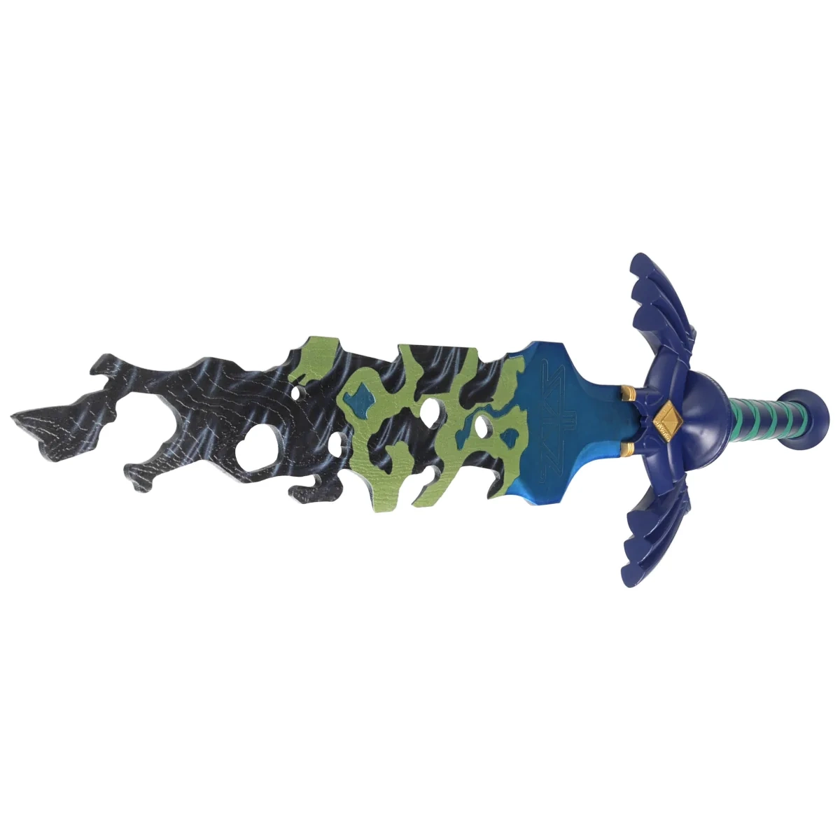 Głownia - wykonana została ze stali malowanej w odcieniach niebieskim i czarno-szarym, z licznymi perforacjami i imitacją organicznych pęknięć. Całość odwzorowuje charakterystyczną stylistykę zniszczonego Master Sworda z gry, oddając efekt erozji i magicznego zużycia. Kształt ostrza jest asymetryczny, z nieregularną linią tnącą i rozległymi „ubytkami” strukturalnymi, co czyni miecz wyjątkowym elementem dekoracyjnym. Wykończenie powierzchni podkreśla motywy świata natury oraz wpływ czasu i magii – dokładnie tak, jak przedstawiono to w Tears of the Kingdom.