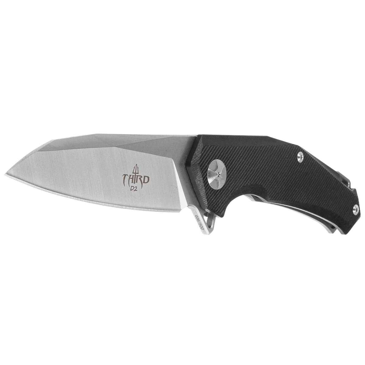 - Third Thunder LE No 036/500 Black G10/Titanium, Satin/ Stonewashed, limitowana edycja dużego noża składanego hiszpańskiej firmy Decor Habitat. Głownia ze stali narzędziowej D2, łożyska, ergonomiczna rękojeść z kompozytu G10 i tytanu.