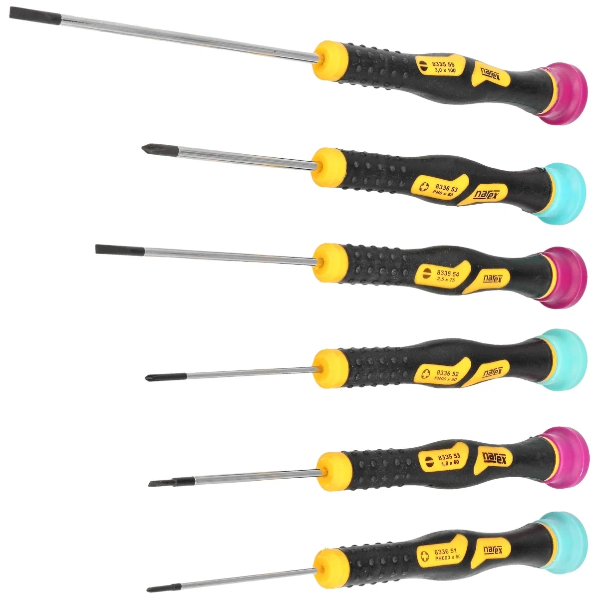 Precyzja i niezawodność w Twoich rękach! Zestaw wkrętaków Narex 862622 to idealne narzędzie do montażu i naprawy drobnej elektroniki, takich jak telefony, aparaty fotograficzne czy urządzenia pomiarowe. Ergonomiczne uchwyty i najwyższej jakości stal gwarantują wygodę oraz trwałość.