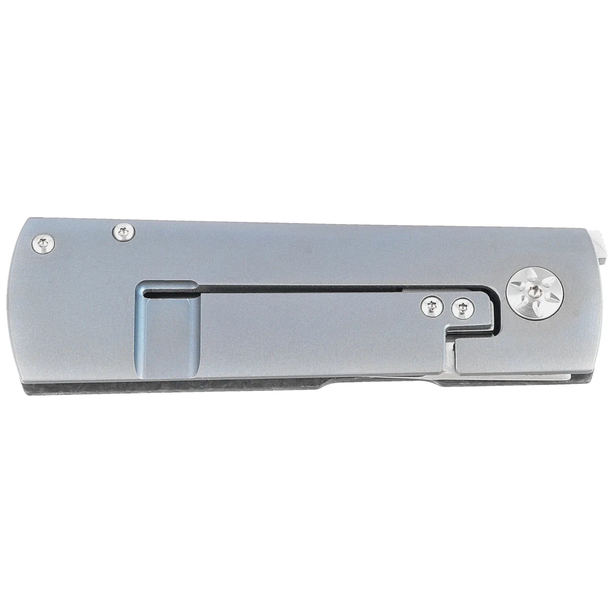 Rękojeść - okładzina po stronie prezentacyjnej z kompozytu Fat Carbon, materiału o wyjątkowej wytrzymałości i estetyce. Strona blokady z tytanu, okładziny mocowane do kunsztownego backspacera. Ozdobny pivot pięknie kontrastuje z kolorem okładzin. Prosta linia okładzin pozwala na dopasowanie rękojeści niemal do każdej dłoni, niezależnie od jej rozmiaru czy preferencji chwytu.
