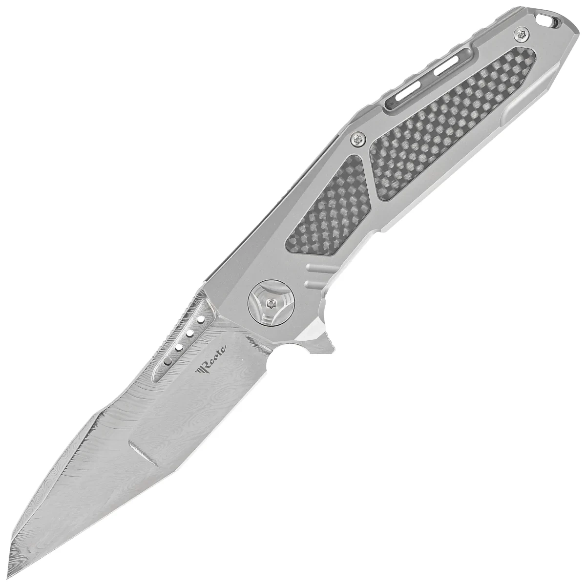 - K-3 Tanto Grey Titanium/Carbon Fiber, Damasteel Damascus folder z manufaktury Reate Knives. Oszałamiająca jakość wykonania i najlepsze materiały to znak rozpoznawczy noży tej firmy. Tytanowa rękojeść z wkładkami z Carbon Fiber, stal Damasteel Damascus.