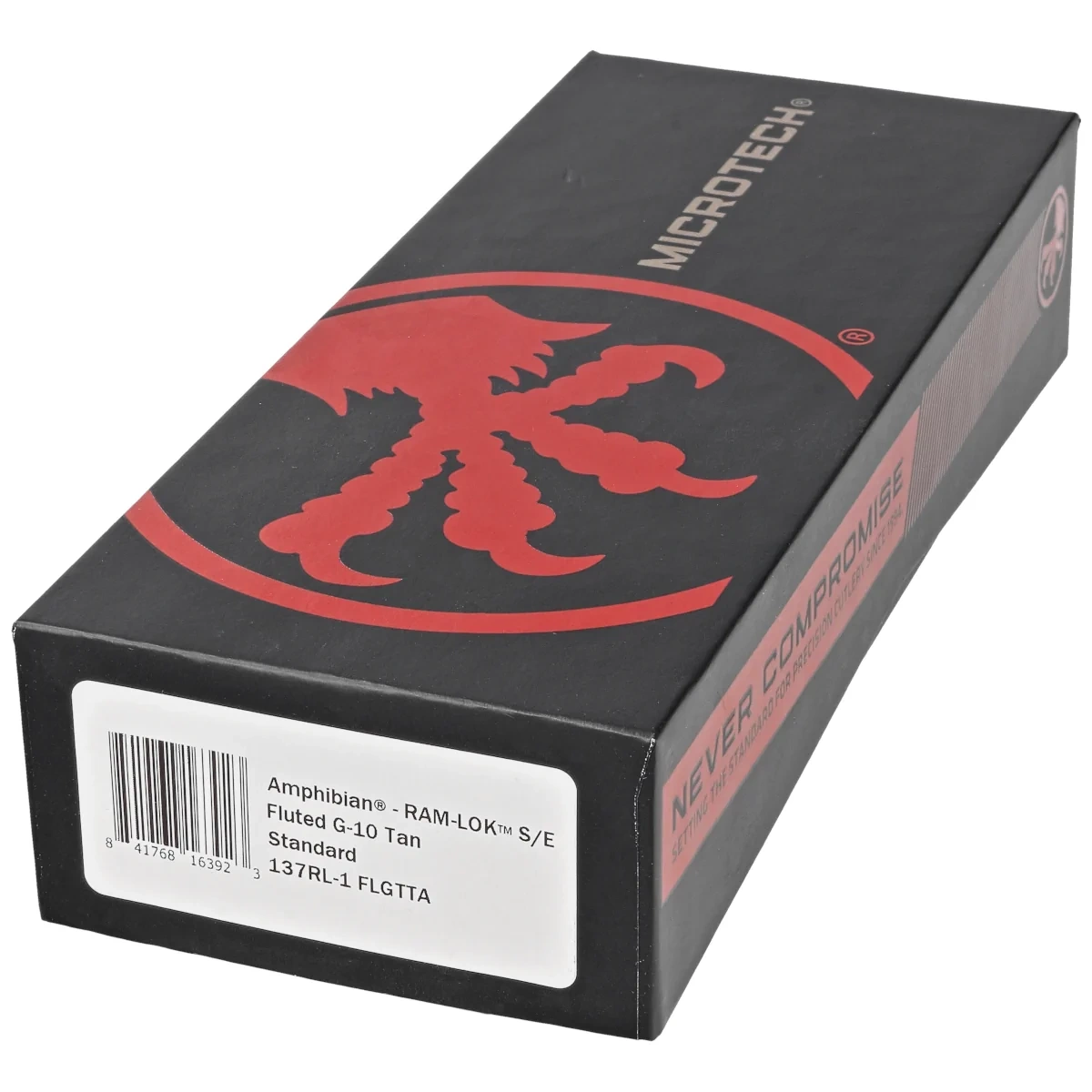 Nóż składany Microtech Amphibian Ram-Lok S/E Tan Fluted G10, Black M390MK by Tony Marfione (137RL-1FLGTTA)