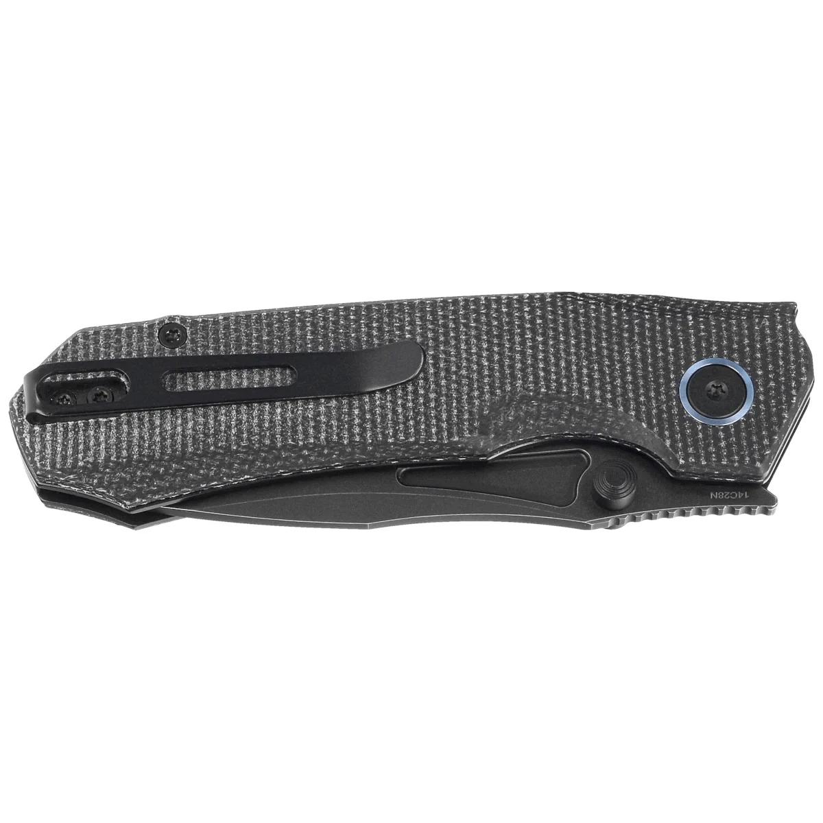 - Rhino Black Micarta, Black Titanium podręczny, kompaktowy nóż składany EDC. Głownia drop point ze stali nierdzewnej 14C28N, szybka płetwa Front Flippera do otwierania oraz rękojeść z Micarty. Znakomity stosunek jakości do ceny! Bestseller!