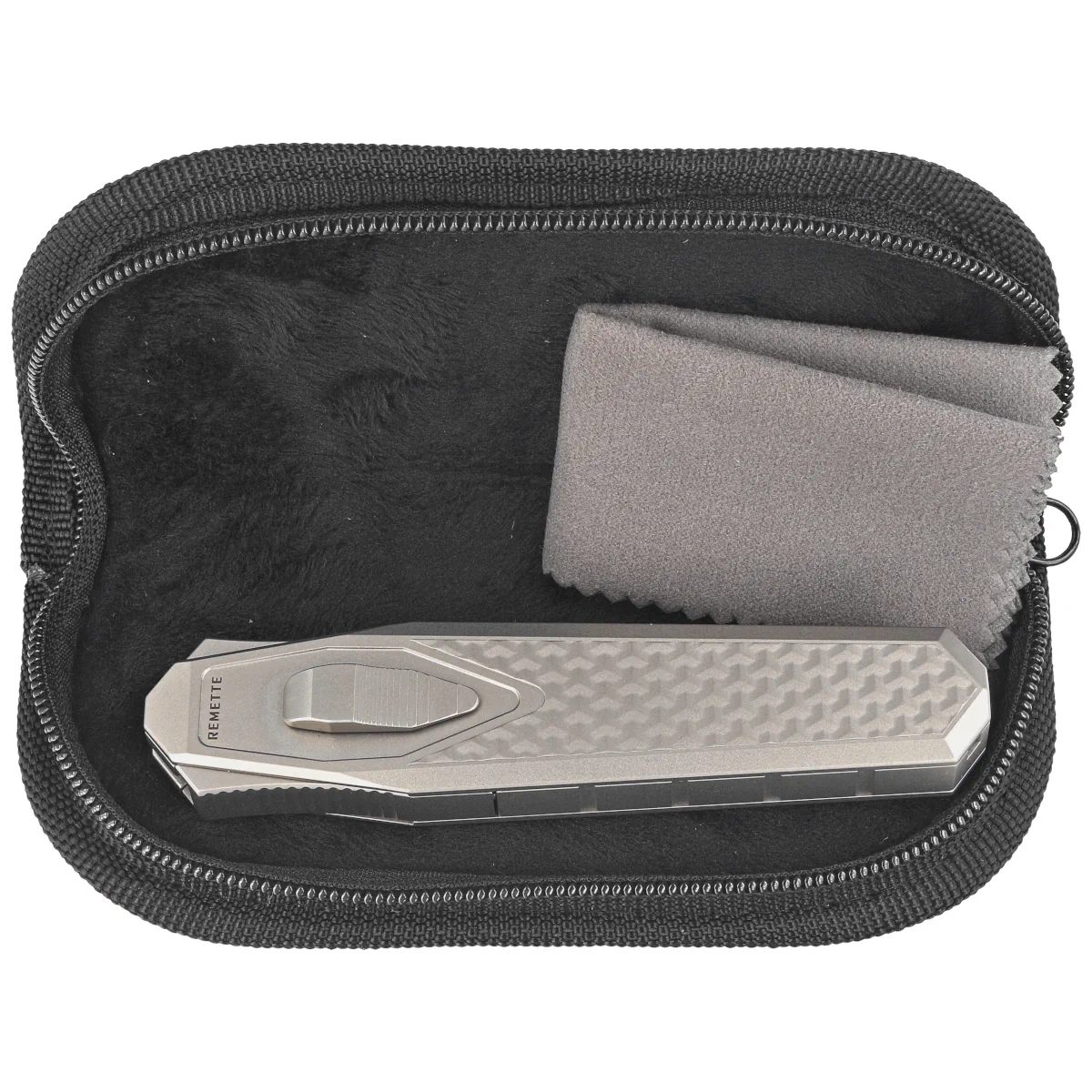 Swordfish Titanium / Carbon Fiber, Pearlescent otwierany intuicyjne, nóż składany z wchodzącej na rynek manufaktury Remette Knives, popis inżynierów w projektowaniu. Gravity OTF (Out The Front) głownia wysuwana z przodu dzięki sile grawitacji. Wzorowany na konstrukcji grawitacyjnego noża lotniczego Luftwaffe, potocznie nazywanego nożem niemieckich spadochroniarzy. Intuicyjne wysuwanie / wsuwanie ostrza jedną ręką (pod wpływem siły ciężkości) oraz najlepsze materiały takie jak stal głowni Böhler M390 czy tytanowa rękojeść, perfekcyjnie połączone ze sobą z niezrównaną jakością marki Remette!