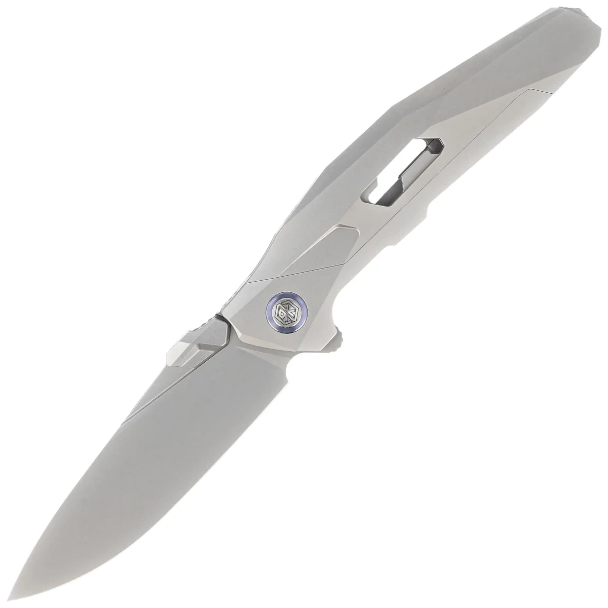 - Shadow Clip Point Gray Titanium, Satin, popis inżynierski twórców z Rike Knives. Duży nóż składany oparty na tytanowym egzoszkielecie i zewnętrznej obudowie z jednego kawałka tytanu. Głownia ze stali Böhler M390. Nieprawdopodobna jakość wykonania!