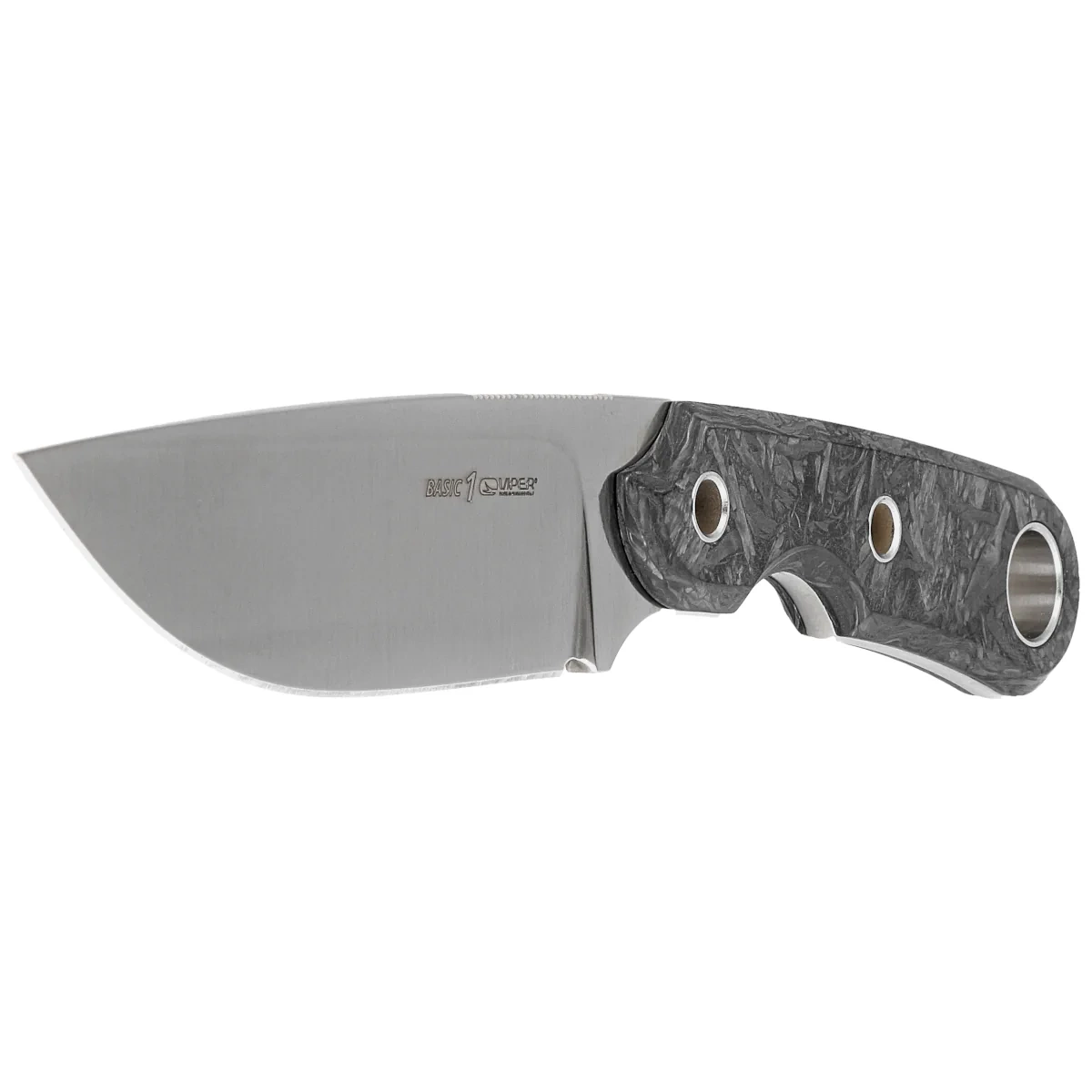 - Basic1 Dark Matter Black Carbon Fiber, Satin, projektu Tommaso Rumici. Solidny kawałek uznawanej za najlepszą stal na noże - MagnaCut, wielofunkcyjny nóż włoskiej marki Viper. Wygodna rękojeść z Carbon Fiber, pochwa z Kydexu z mocowaniem typu Tek-Lok.