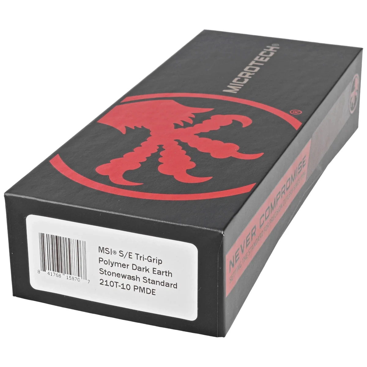 - MSI S/E Dark Earth Tri-Grip Polymer, Stonewashed nóż składany z intuicyjną blokadą RAM-Lock. Doskonała stal ostrza M390MK, efekt współpracy inżynierów firm Microtech i Bohler. Ergonomiczna, polimerowa rękojeść. Projekt Anthony Marfione z Microtech!