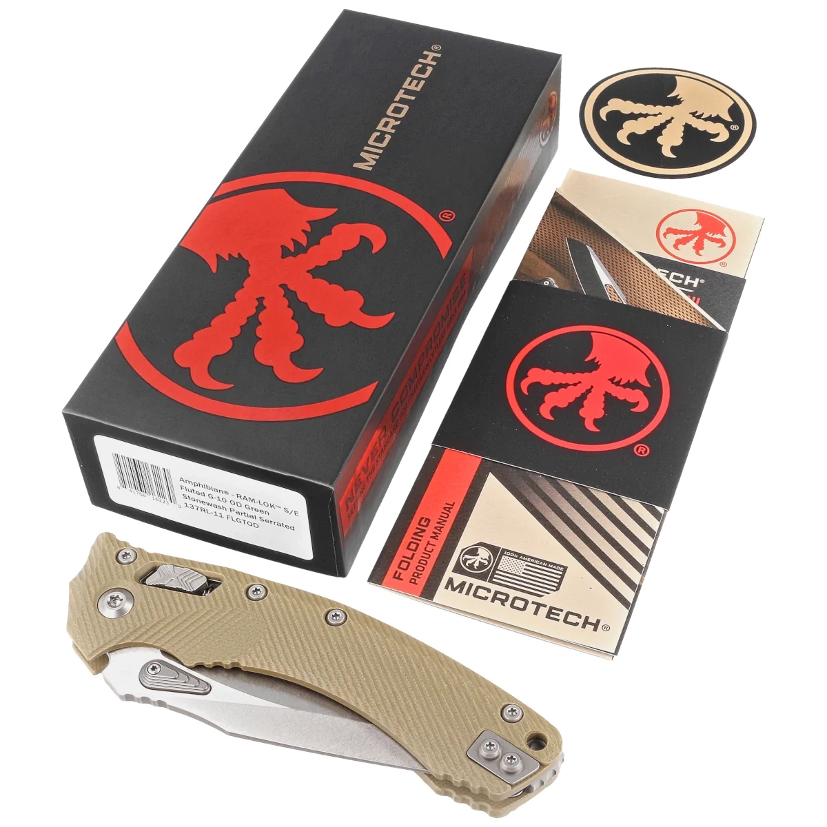 Nóż składany Microtech Amphibian Ram-Lok Fluted Olive Drab G10, Stonewashed P/S M390MK by Tony Marfione (137RL-11FLGTOD)