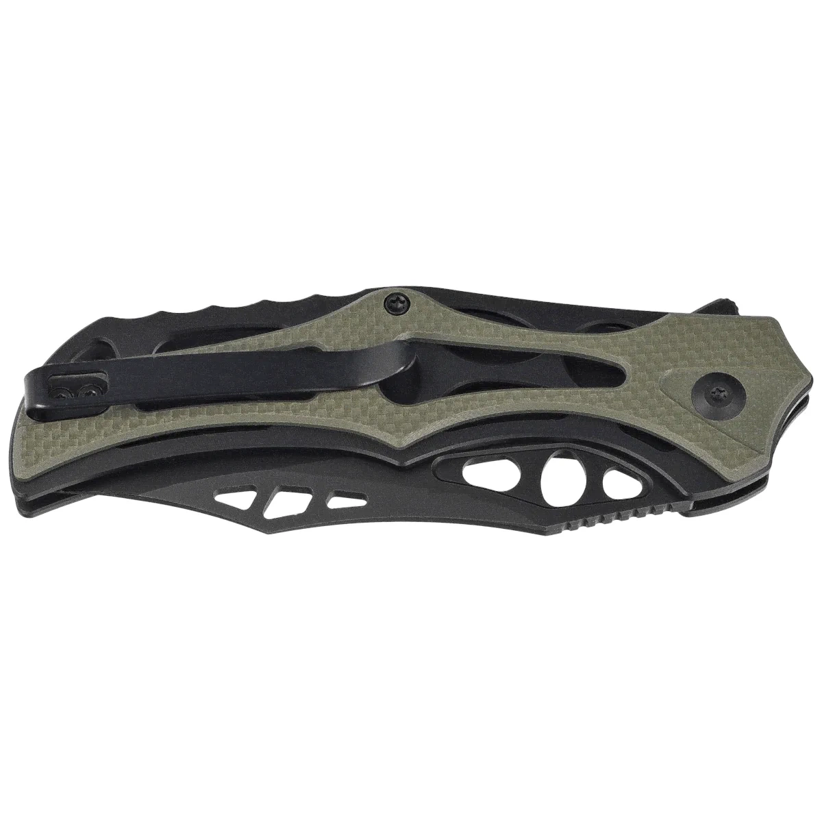 - Biophase Black Aluminium / OD Green G10, Black Stonewashed duży, uniwersalny nóż składany o awangardowej stylistyce. Głownia ze stali nierdzewnej Nitro-V, szkieletowe okładziny z aluminium i kompozytu G10. Wyjątkowo pewny uchwyt!