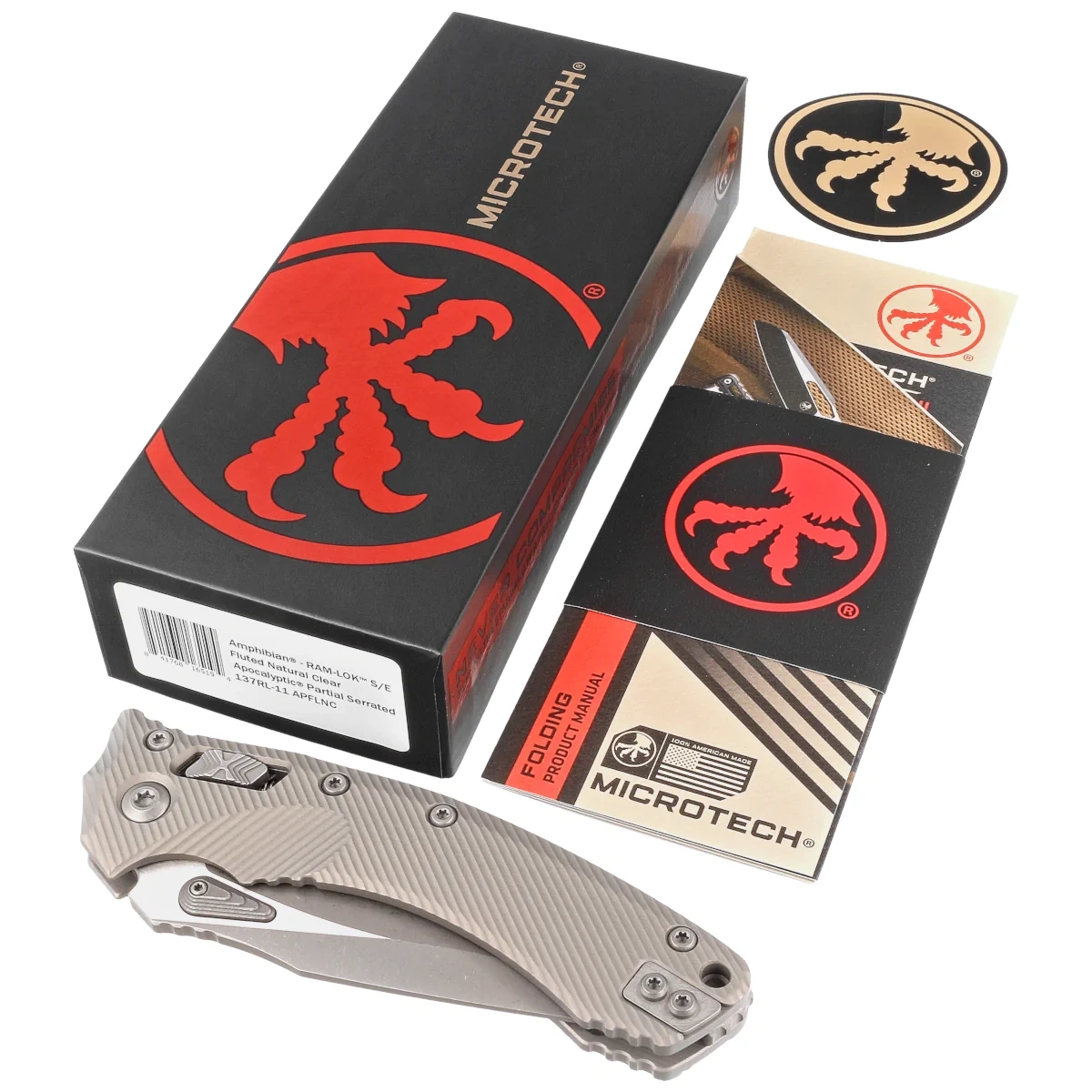 Nóż składany Microtech Amphibian Ram-Lok S/E Fluted Natural Clear Aluminium, Apocalyptic P/S M390MK by Tony Marfione (137RL-11APFLNC)