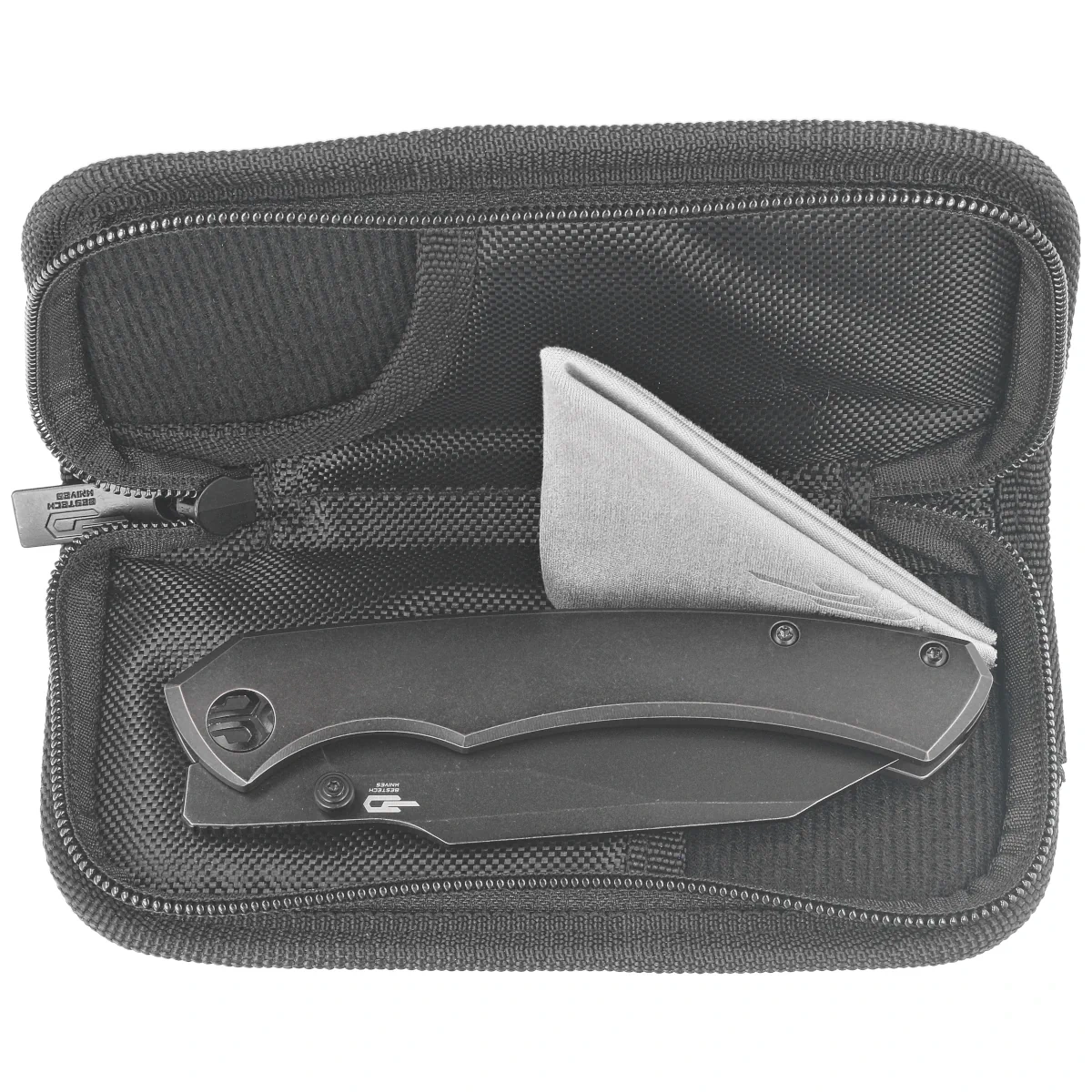 Futerał - nóż zapakowano w zapinany zamkiem nylonowy miękki pouch z logo marki służący do bezpiecznego przenoszenia i przechowywania foldera.