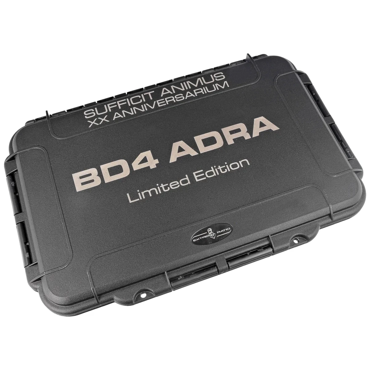 Nóż BD4 Adra Contractor LE No 69/70 Tactical Mud Aluminium, Black dostarczany jest w wodoszczelnej, pyłoszczelnej i wstrząsoodpornej walizce technicznej z polipropylenu z certyfikatem IP67, z zaworem ciśnieniowym, metalową plakietką oraz okolicznościowym zwojem z historią jednostki.