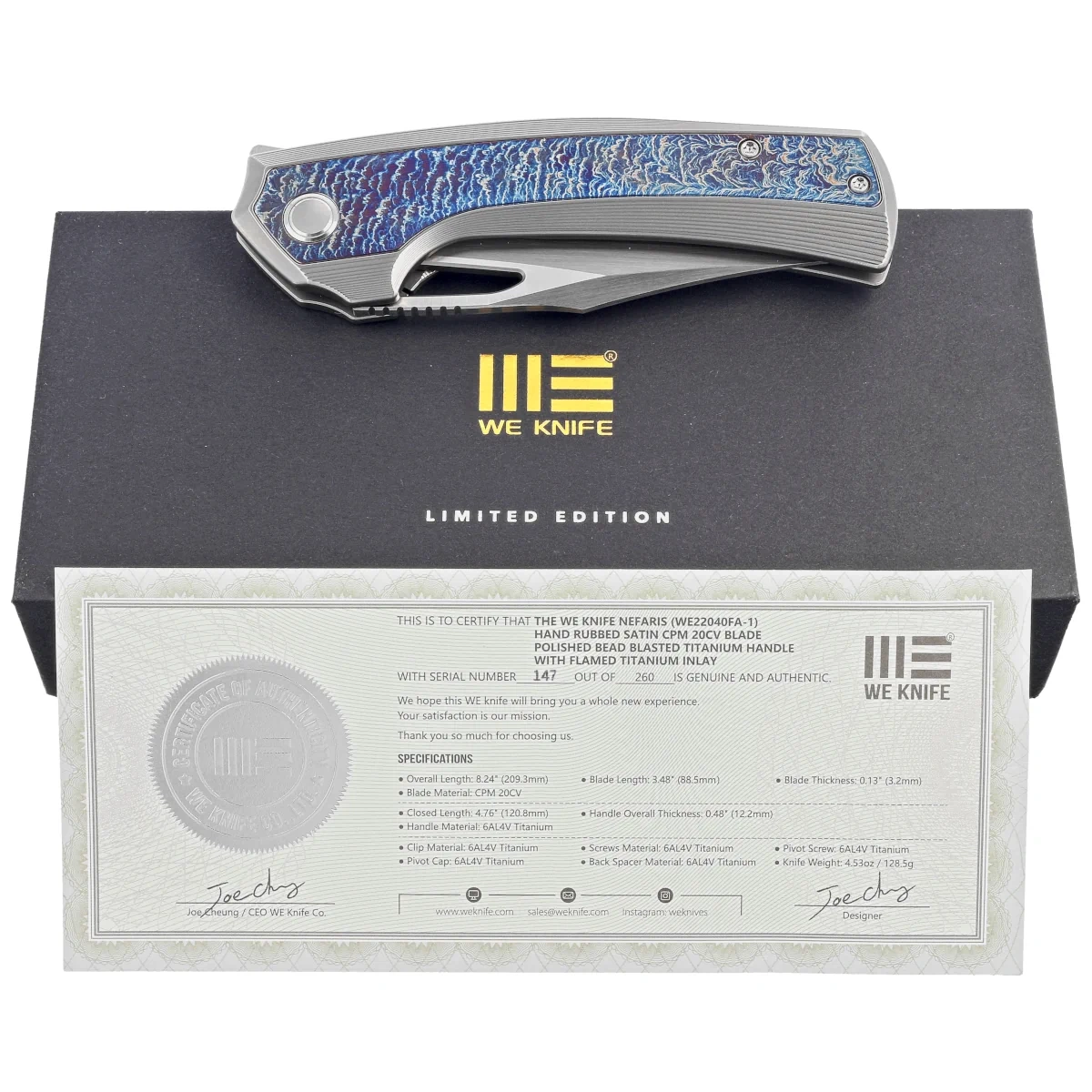 Nóż składany WeKnife Nefaris LE No 147/260 Gray/Flamed Titanium, Hand Rubbed Satin CPM 20CV (WE22040FA-1)