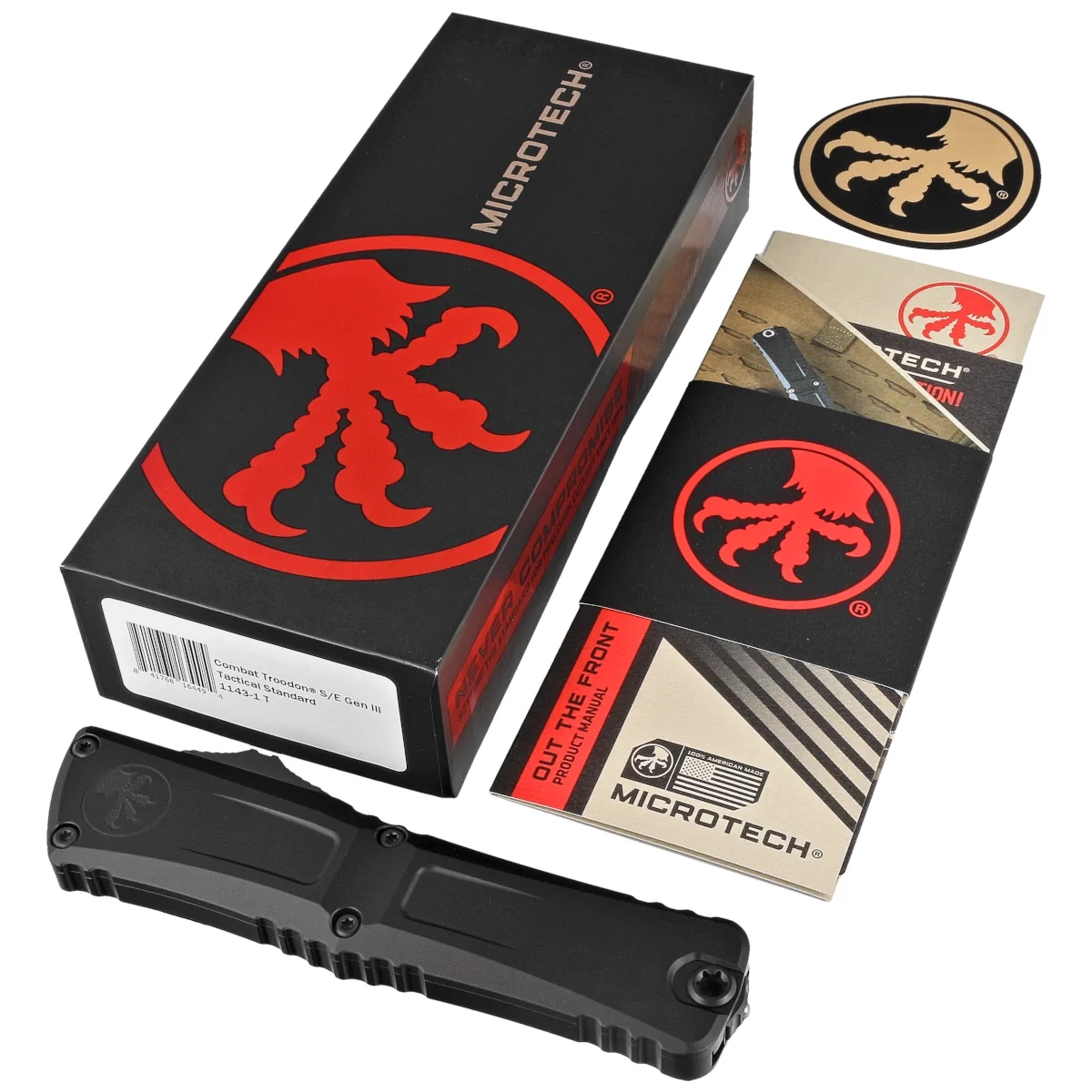 Nóż automatyczny OTF Microtech Combat Troodon Gen III S/E Black Aluminium, Tactical M390MK by Tony Marfione (1143-1T)