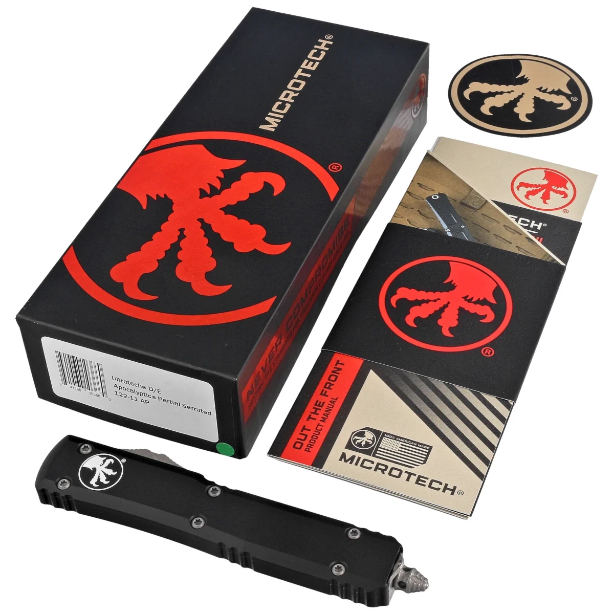 Nóż automatyczny OTF Microtech Ultratech D/E Black Aluminium, Apocalyptic M390 by Tony Marfione (122-11AP)