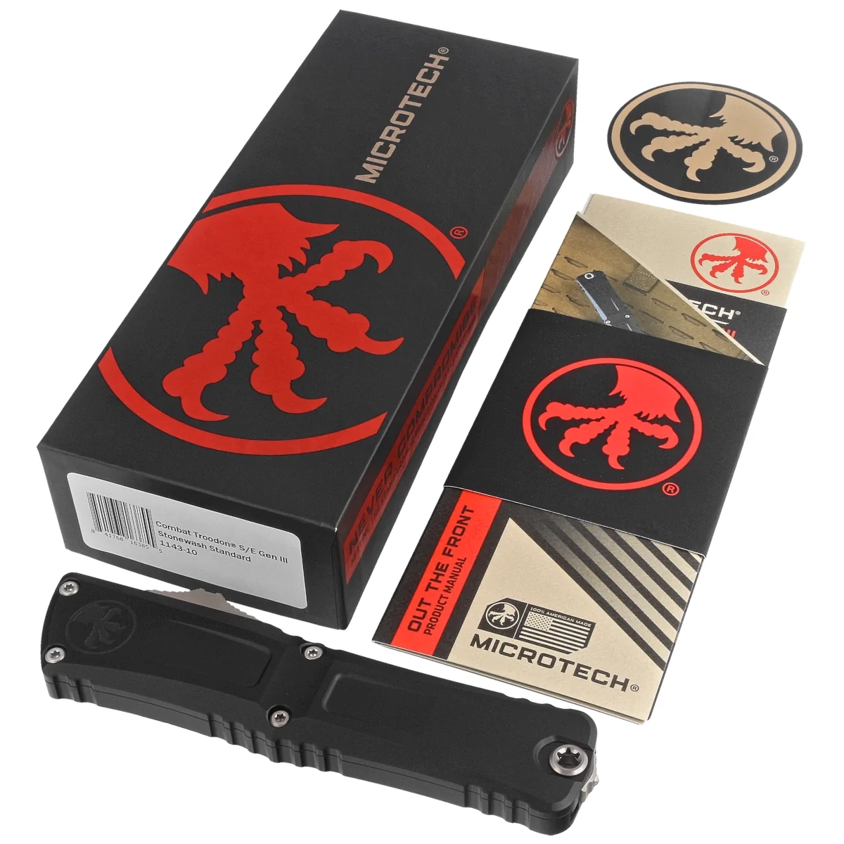 Nóż automatyczny OTF Microtech Combat Troodon Gen III S/E Black Aluminium, Stonewashed M390MK by Tony Marfione (1143-10)