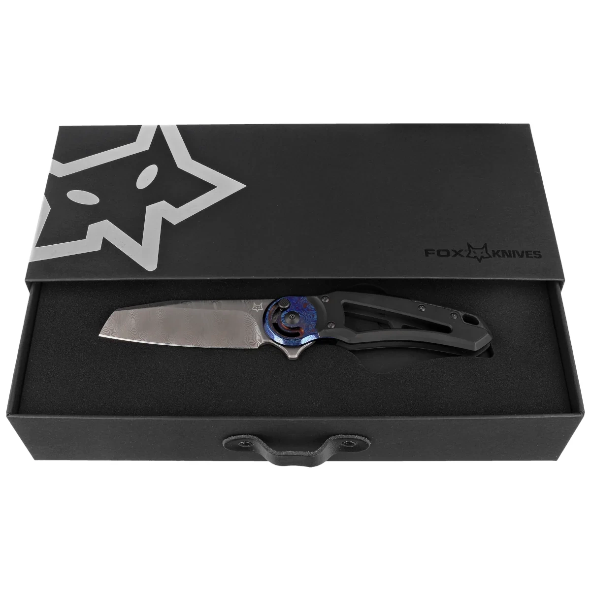 Nóż składany Fox Metamorphosis Black PVD Titanium, Timascus HW, Damasteel Super Dense Twist (FX-556-A1)