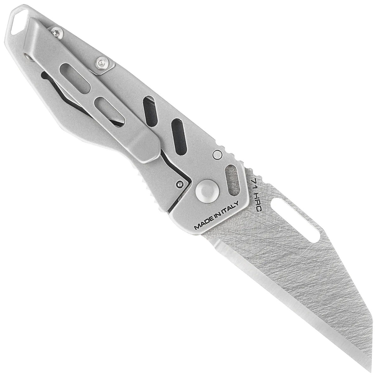 Głownia - typu Wharncliffe o pełnym płaskim szlifie (Full Flat Grind). Surowe wykończenie (Sandblast) - jego efektowny wygląd uzyskano poprzez piaskowanie PTC drobnym piaskiem. W przeciwieństwie do klingi ze stali, ostrze PTC jest całkowicie odporne na rdzę, dzięki czemu nadaje się zarówno do pracy w słodkiej jak i słonej wodzie. Głownię można otworzyć za pomocą otworu w klindze (thumb hole). Dzięki temu mogą z niego bez problemu korzystać osoby prawo i leworęczneCałość blokowana jest sprawdzoną blokadą Frame Lock.