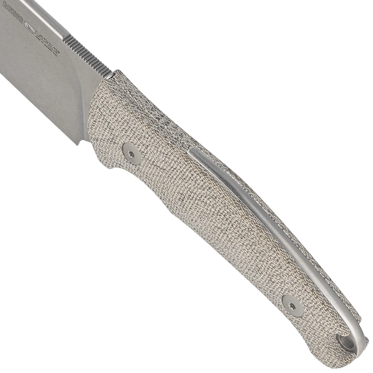- Ranger Green Canvas Micarta, Stonewashed projektu Jensa Ansø. Solidny kawałek sprawdzonej stali nierdzewnej N690, wielofunkcyjny nóż włoskiej marki Viper. Wygodna rękojeść z kompozytu Micarta, pochwa z wysokojakościowej skóry z mocowaniem do pasa.