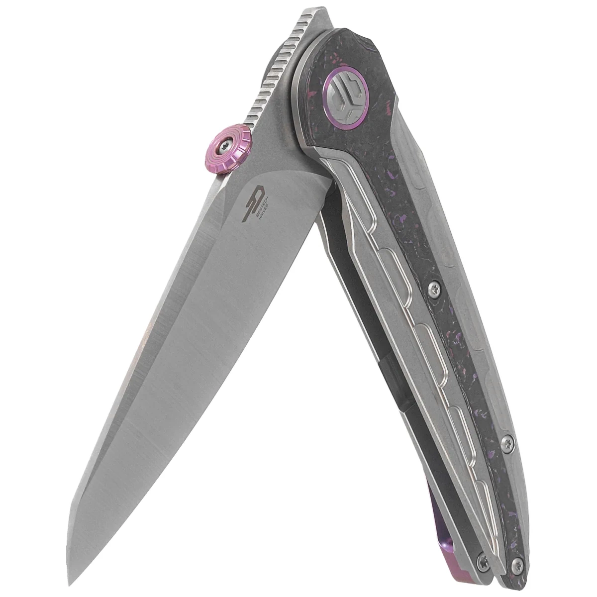 Nóż składany Bestech Prydwen Grey Titanium/Purple Haze Fat Carbon, Stonewashed/Satin MagnaCut by Kombou (BT2409A)