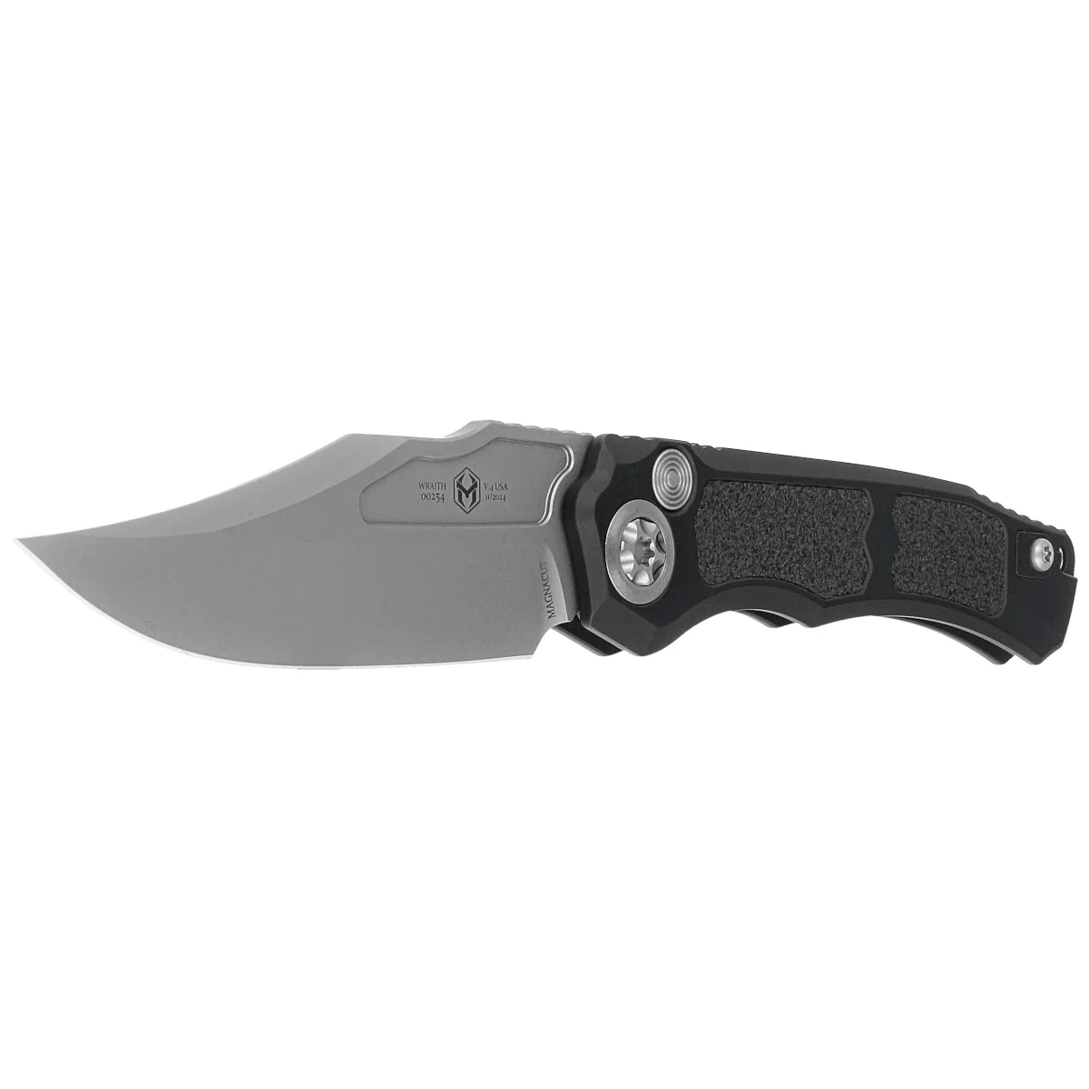 Wraith V4 Auto Black Aluminium/3M, Bead Blasted to potężny nóż automatyczny typu switchblade z serii Wraith-A wykorzystujący działający z ogromną siłą i mocą, sprężynowy mechanizm rozkładający ostrze, wyróżniając go na tle innych noży. Wyposażony w ostrze ze stali MagnaCut i aluminiową rękojeść z czarną wkładką trakcyjną, łączącą lepszą przyczepność z wyrafinowaną elegancją. Zaprojektowany z myślą o wydajności w pracy, łączy w sobie elegancję i funkcjonalność. Precyzja wykonania, jakość materiałów czynią go nie tylko praktycznym narzędziem, ale także dziełem sztuki użytkowej. Bez względu na to, czy jesteś kolekcjonerem noży, czy szukasz niezawodnego narzędzia do codziennego użytku, Wraith Auto to nóż, który z pewnością przekroczy Twoje oczekiwania, to wyjątkowe doświadczenie, które na nowo definiuje, czym może być nóż automatyczny.