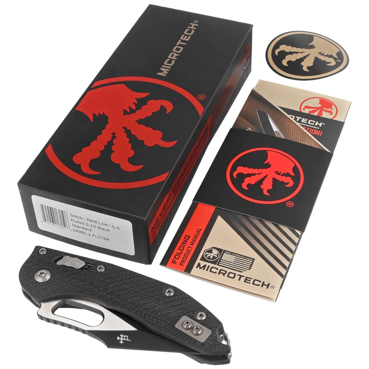 Nóż składany Microtech Stitch Ram-Lok S/E Fluted Black G10, Black M390MK by Borka Blades and Tony Marfione (169RL-1FLGTBK)