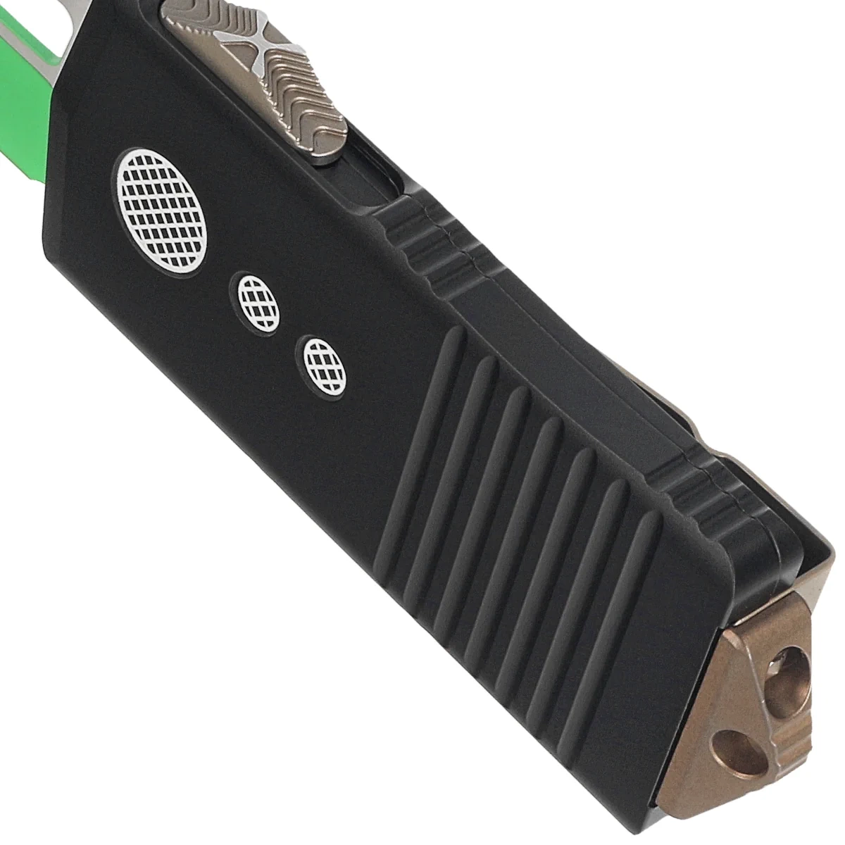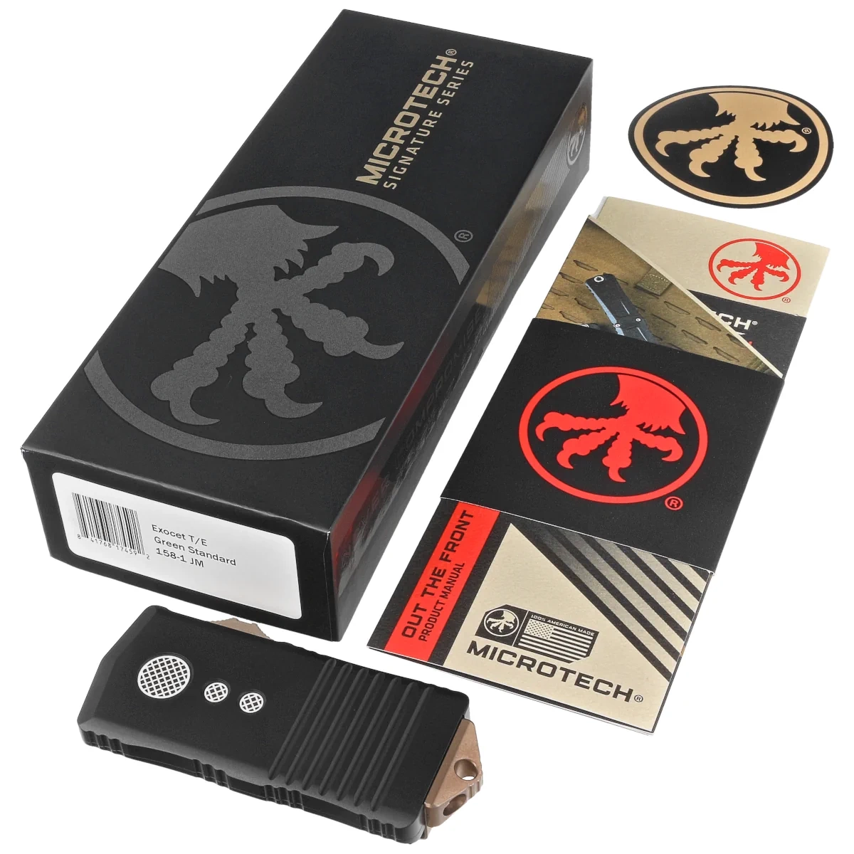 Nóż automatyczny OTF Microtech Exocet T/E Jedi Master Black Aluminium, Green M390 by Tony Marfione (158-1JM)