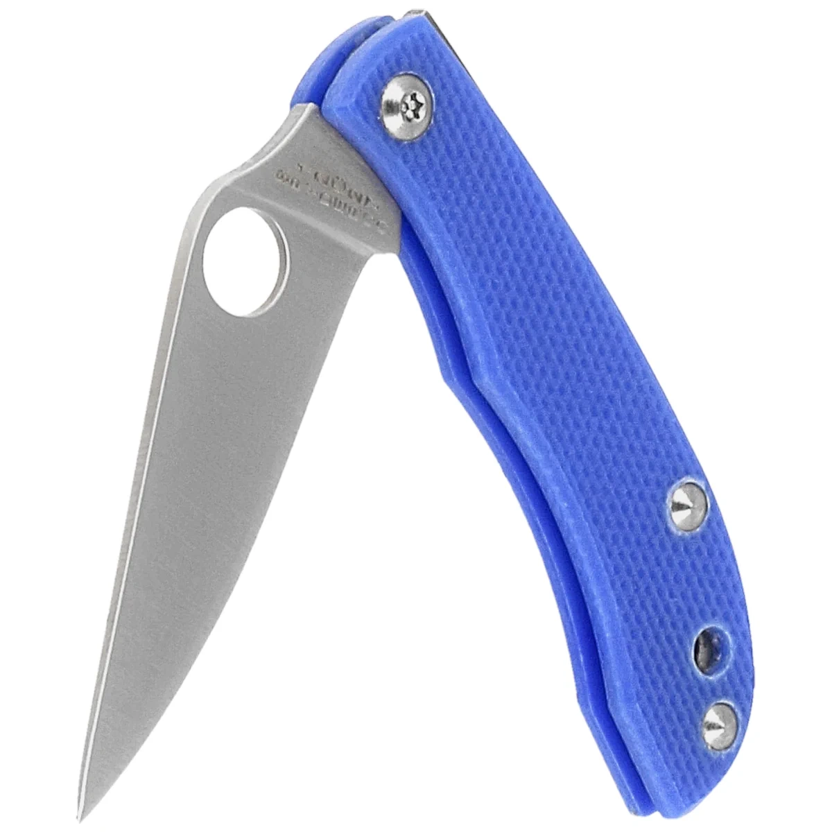 - Honeybee Blue G10, Satin, w pełni funkcjonalny, imponująco ostry lekki mikroscyzoryk Spyderco. Doskonałe uzupełnienie breloka na klucze. Głownia ze stali 12C27, rękojeść z kompozytu G10. Otwór do mocowania linki lub łańcuszka do zawieszenia noża na szyi.